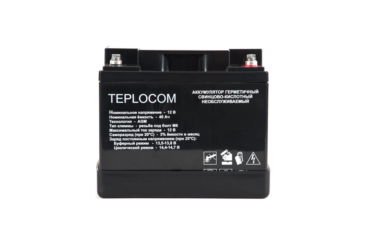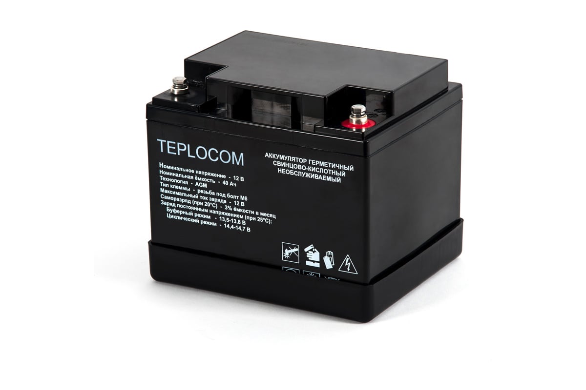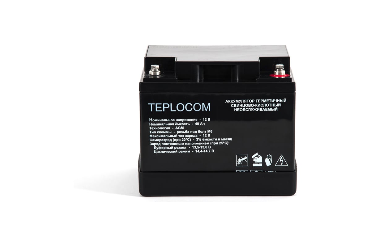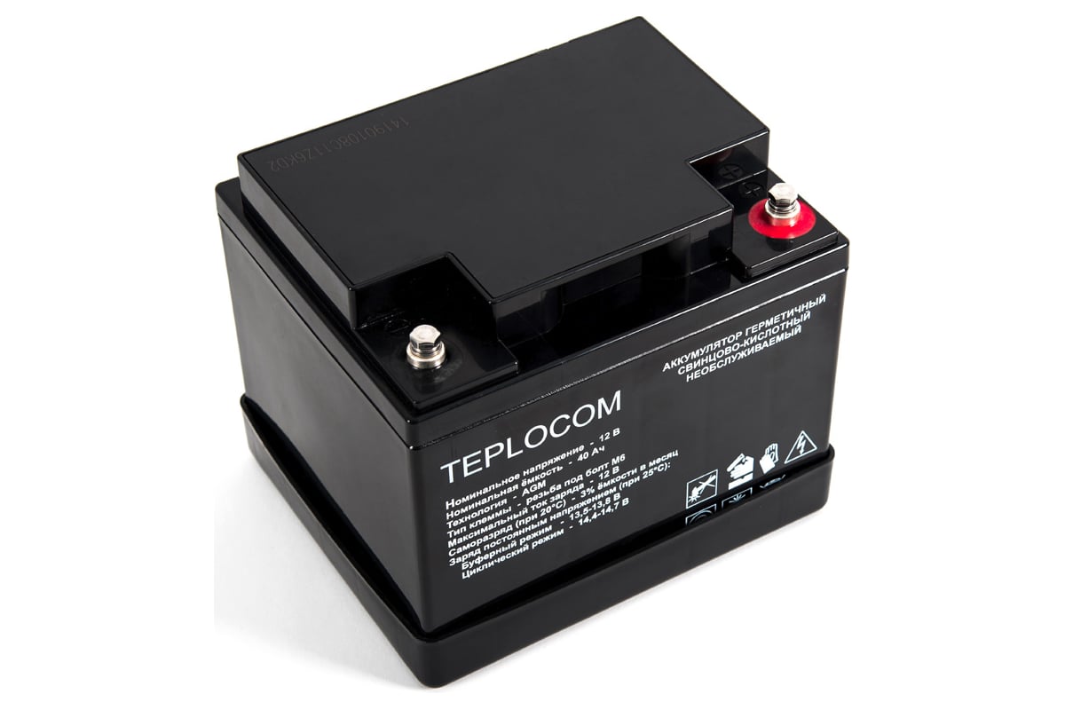 Аккумулятор герметичный свинцово-кислотный необслуживаемый TEPLOCOM 40А*ч производится по технологии AGM (Absorbent Glass Mat) и предназначен для использования в составе системы резервного питания.
