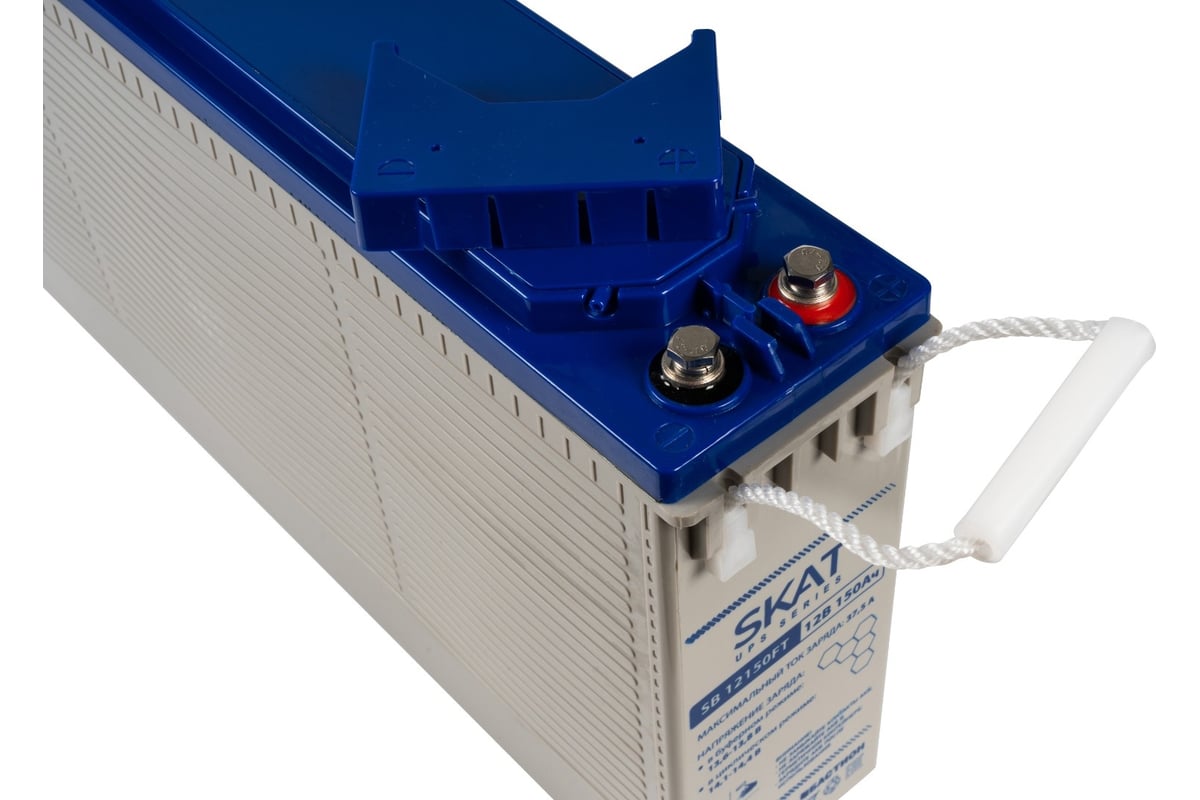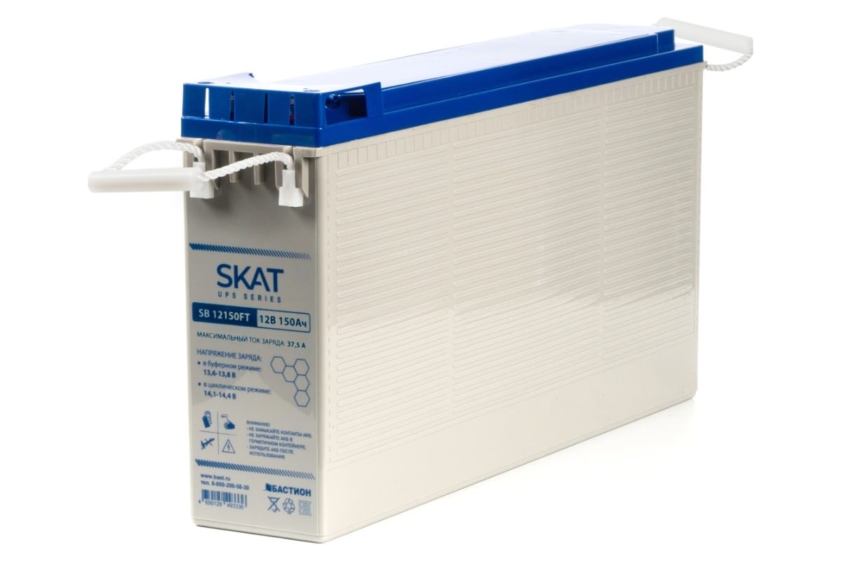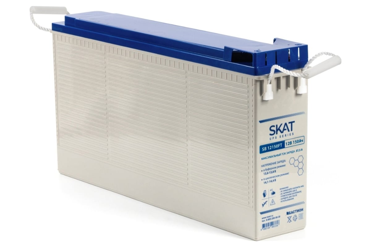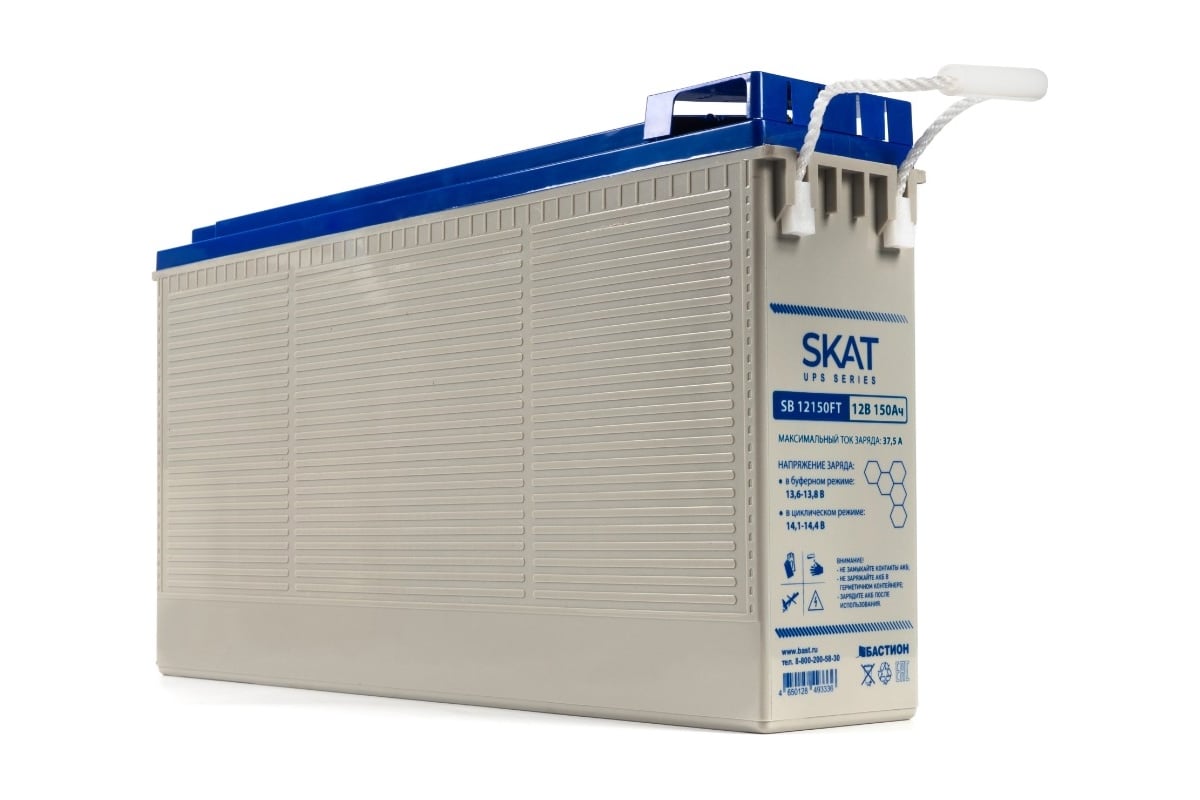 Аккумулятор герметичный свинцово-кислотный необслуживаемый SKAT SB 12150FT, производимый по технологии AGM (Absorbent Glass Mat) с системой рекомбинации газов VLRA, предназначен для использования в составе системы резервного питания.
