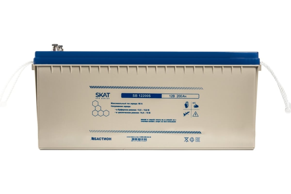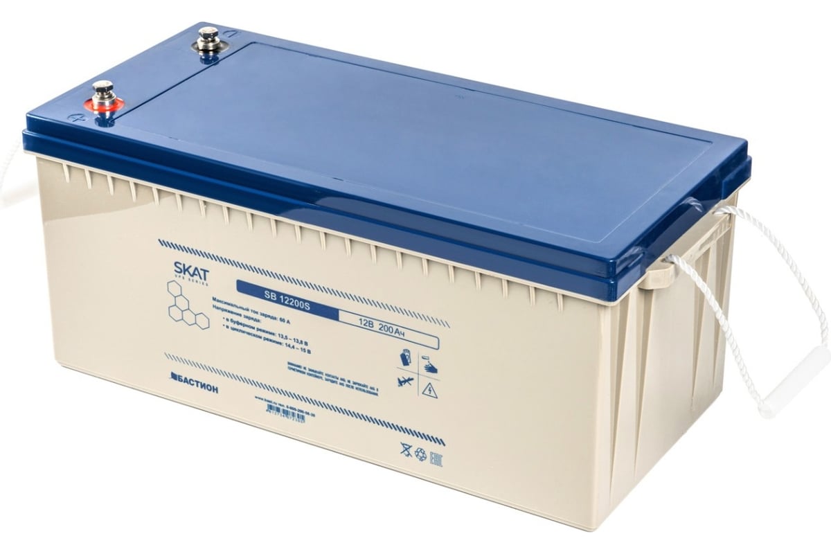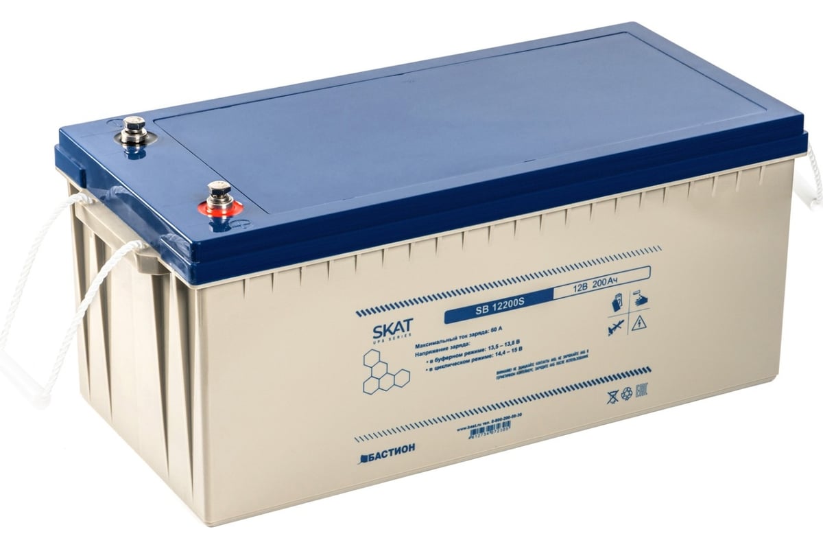 Аккумулятор герметичный свинцово-кислотный необслуживаемый SKAT SB 12200S, производимый по технологии AGM (Absorbent Glass Mat) с системой рекомбинации газов VLRA, предназначен для использования в составе системы резервного питания.