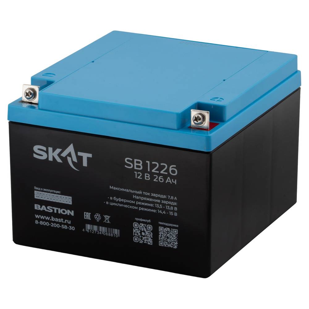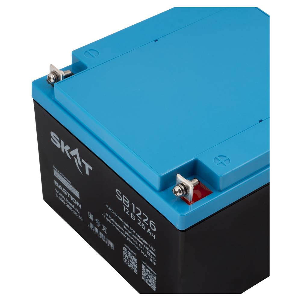Аккумулятор герметичный свинцово-кислотный необслуживаемый SKAT SB 1226 производится по технологии AGM (Absorbent Glass Mat) с системой рекомбинации газов VLRA и предназначен для использования в составе системы резервного питания.