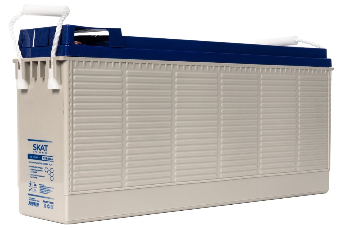 Аккумулятор герметичный свинцово-кислотный необслуживаемый SKAT SB 1280FT, производимый по технологии AGM (Absorbent Glass Mat) с системой рекомбинации газов VLRA, предназначен для использования в составе системы резервного питания.