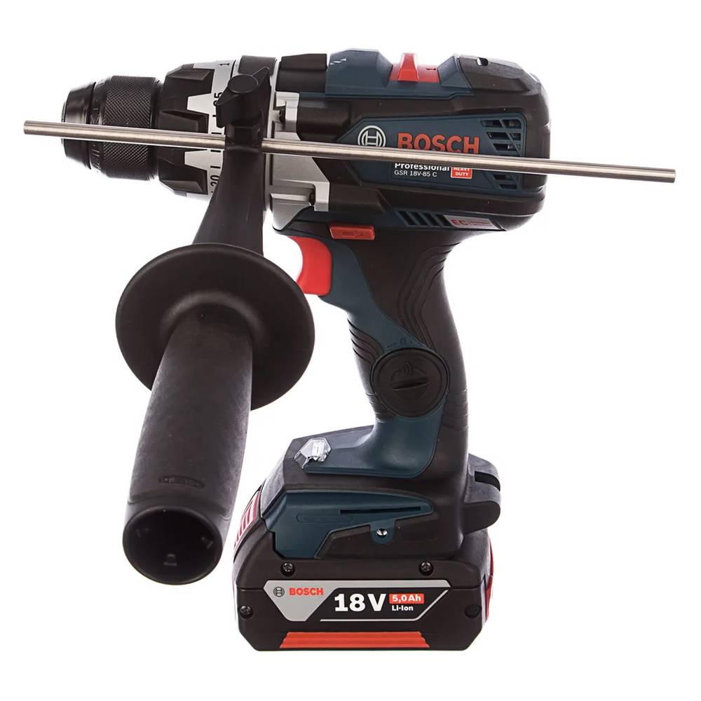 Дрель-шуруповерт аккумуляторная Bosch GSR 18V-85 C (100) средней и малой мощности подойдет для домашнего ремонта. Бесщеточный двигатель медленно изнашивается из-за отсутствия трения на щетках. Li-Ion блок питания дольше держит заряд и не снижает свою емкость. Может сверлить небольшие отверстия в мягких породах дерева и тонком металле. Инструмент подходит для работы с деревом и металлом, так как развивает обороты до 2100 об/мин. Дополнительный аккумулятор продлевает время работы без подзарядки. В наборе кейс для хранения и транспортировки.