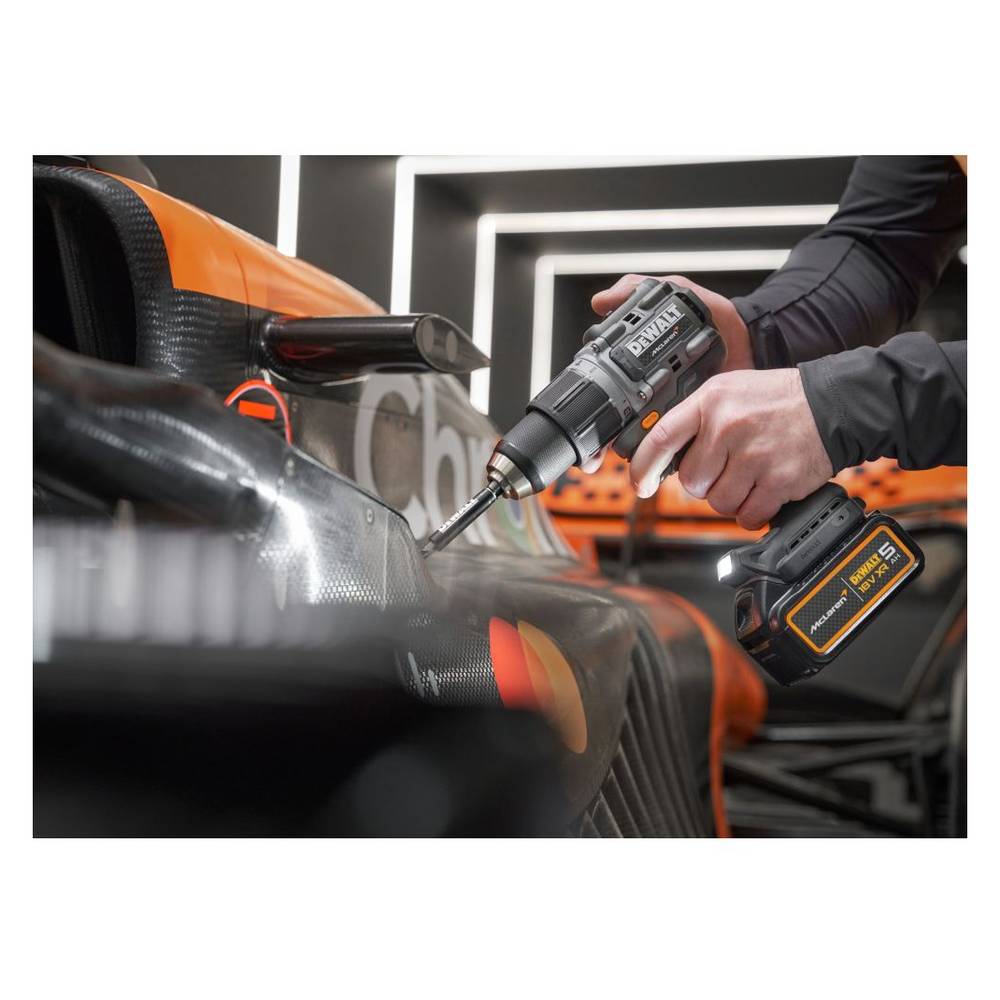 Всемирно известный бренд DeWALT стал официальным партнером по поставке инструментов для команды McLaren Formula 1. В знак дружеских отношений компания DeWALT недавно выпустила лимитированную серию инструментов, в том числе дрель-шуруповерт DCD85ME (на базе DCD805). Инструмент оформлен в стилистике McLaren под карбон, выглядит эффектно. В комплект входят два аккумулятора McLaren Edition 18V 5Ач и зарядное устройство. Набор поставляется в кейсе TSTAK черного цвета.