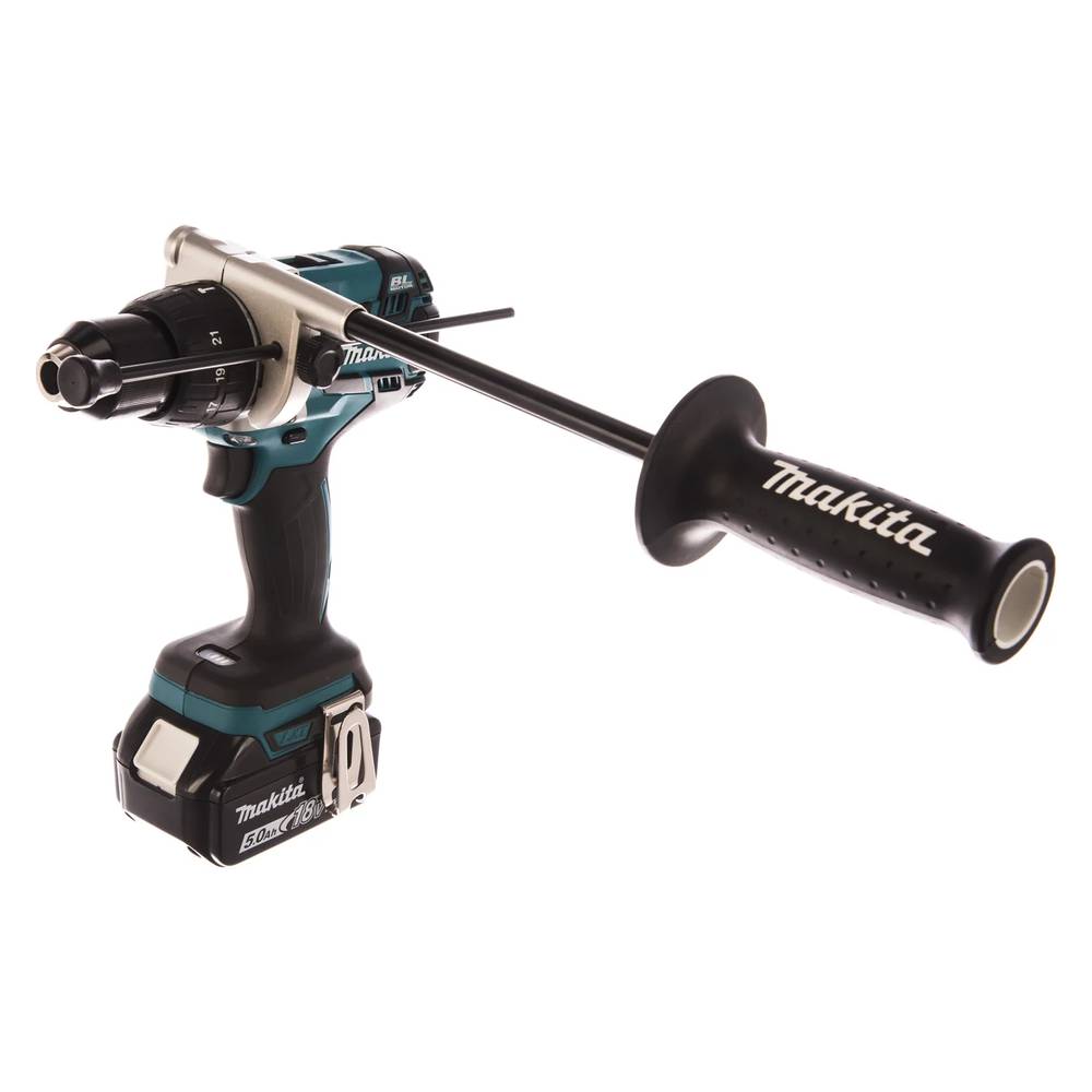Шуруповерт Makita DHP481RTE — аккумуляторный ударный инструмент с бесщеточным двигателем. Двухскоростной редуктор обеспечивает комфортную работу с материалами любой плотности. Максимальная величина оборотов составляет 2100 об/мин. Предназначен для сверления отверстий диаметром 1,5-13 мм в кирпиче, бетоне и камне. В режиме шуруповерта можно использовать инструмент для работы с деревом, металлом, керамикой и пластиком. Быстрозажимной патрон позволяет быстро и безопасно менять оснастку. Дополнительная рукоятка и прорезиненные вставки гарантируют надежный хват. Благодаря подсветке подходит для применения в слабо освещенных местах. Аккумуляторный ударный шуруповерт Makita DHP481RTE работает от Li-Ion аккумулятора емкостью 5 А*ч и напряжением 18 В. В комплект входят 2 элемента питания.