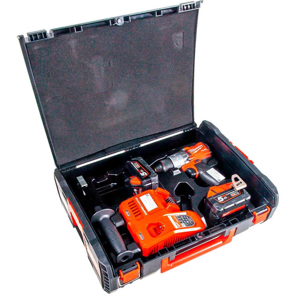 Аккумуляторная дрель-шуруповерт Milwaukee M18 FDD2-502X FUEL имеет бесщеточный двигатель, цифровую защиту от перегрузки для инструмента и аккумулятора.