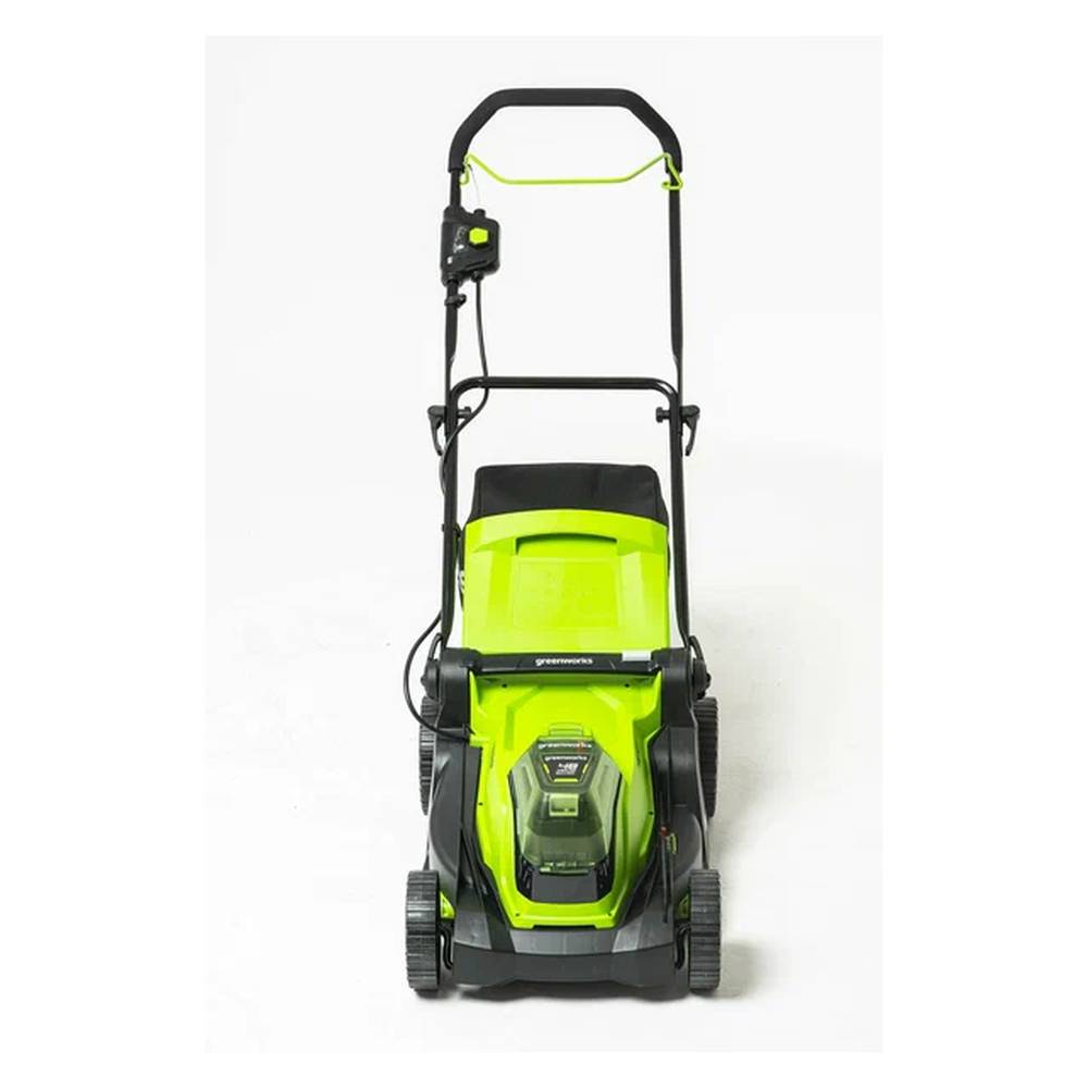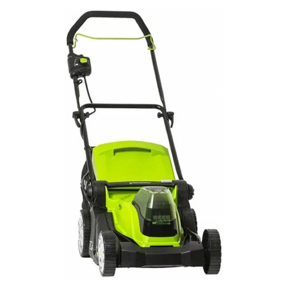 Аккумуляторная газонокосилка Greenworks G24X2LM41 подойдет для ухода за газоном небольшой и средней площади. У модели предусмотрены 3 режима кошения: сбор травы в травосборник объемом 50л, задний выброс травы и кошение в режиме мульчирования, что позволяет использовать скошенную траву в качестве компоста для газона. Для надежности корпус газонокосилки выполнен из специального «мягкого» армированного АВС-пластика, который не трескается при попадании в него небольших камней. Для защиты от случайного включения предусмотрены специальный ключ безопасности и кнопка-предохранитель. Ручка газонокосилки складывается, что обеспечивает удобство транспортировки и хранения.