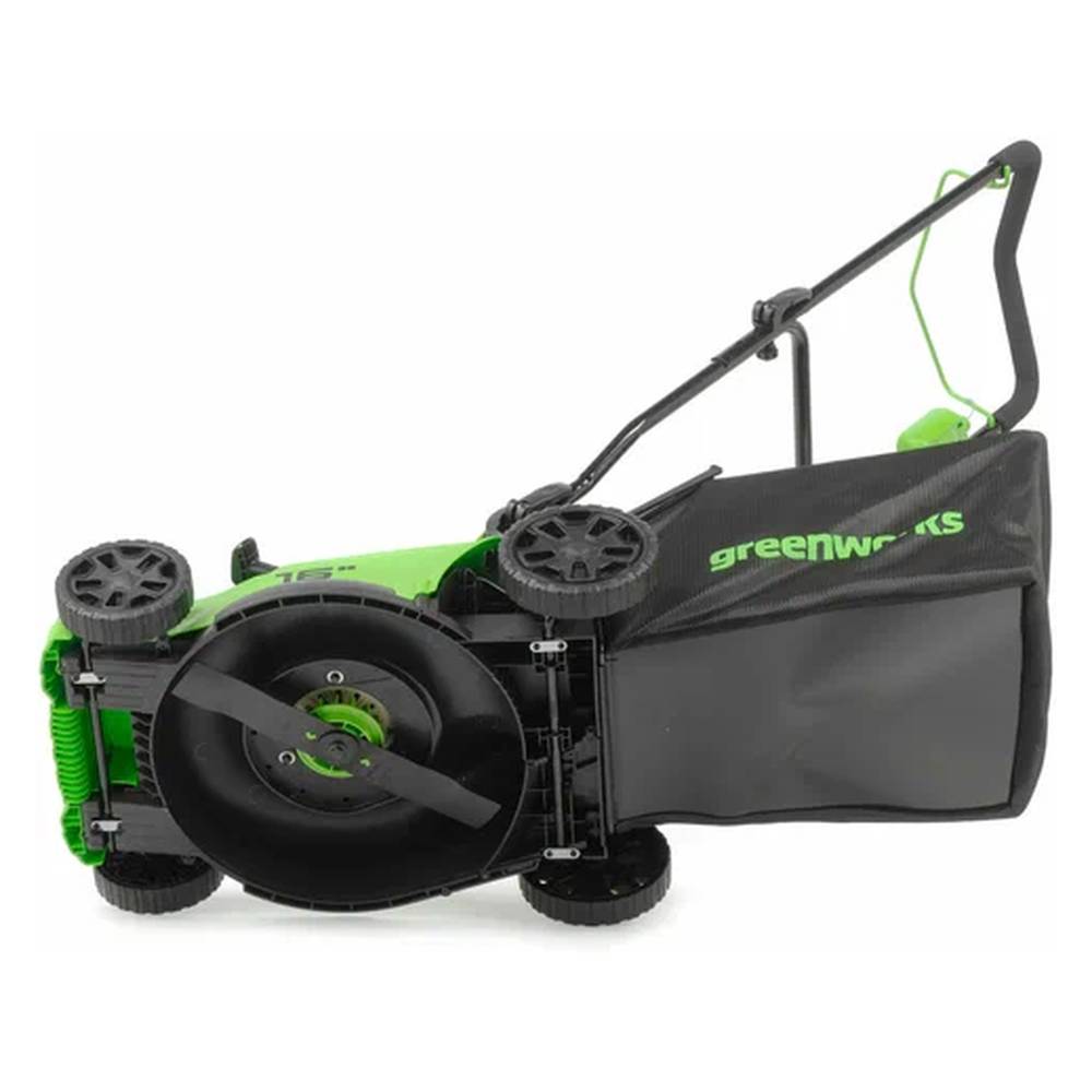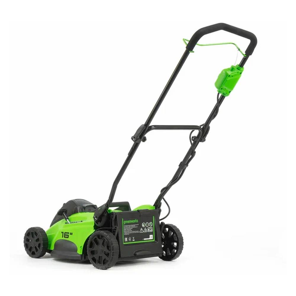 Аккумуляторная газонокосилка Greenworks GD40LM16XK4 - полноценная альтернатива инструменту с питанием от сети или бензиновому. Газонокосилка выполняет две функции: сбор травы в травосборник и мульчирование. 5ти ступенчатая регулировка высоты скашивания производится одной ручкой расположенной на деке у переднего колеса. Дека газонокосилки выполнена из ударопрочного пластика, устойчивого к попаданию посторонних предметов, таких как небольшие камни. Газонокосилка работает от универсального Li-ion аккумулятора совместимого с 50+ моделями инновационного садового инструмента из линейки Greenworks 40V. Батарейный отсек увеличенного размер для установки аккумулятора большой емкости на 8Ач.