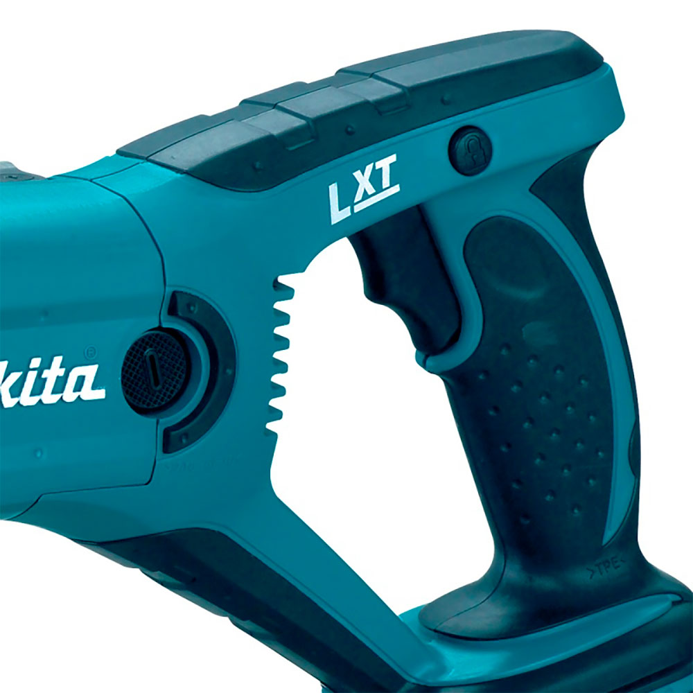 Сабельная пила Makita LXT DJR181RFE обеспечивает высокую скорость реза. Благодаря подсветке рабочей зоны, можно работать даже при плохом освещении. Основная рукоятка покрыта прорезиненными вставками, что исключает выскальзывание инструмента. Электронная регулировка оборотов позволяет подстравиваться под конретный тип материала. Глубина распила древесины составляет 255 мм, а металлической трубы - 130 мм.