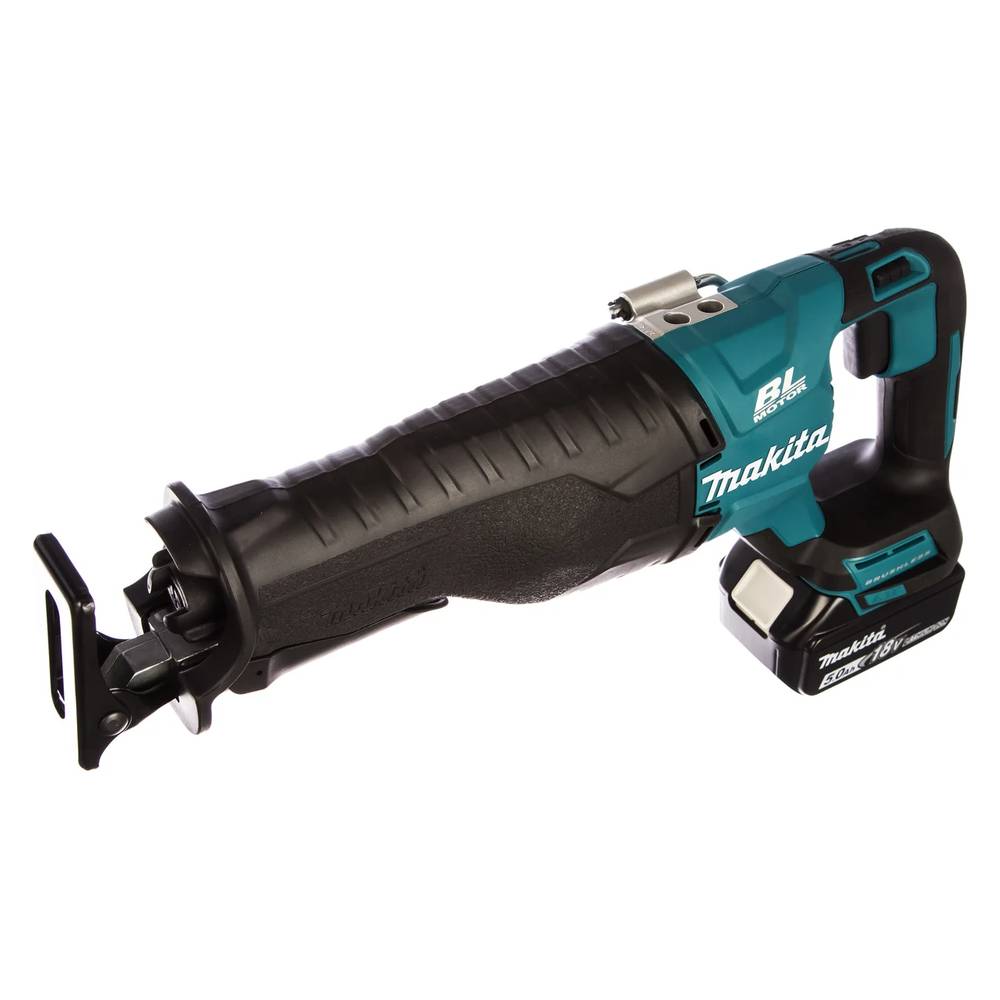 Пила сабельная аккумуляторная Makita DJR187RTE мощный и удобный в эксплуатации инструмент с электронной регулировкой скорости и светодиодной подсветкой. Поставляется с двумя литий-ионными аккумуляторными батареями, напряжением 18 В и емкостью 5 Ач. В комплектацию также входят: зарядное устройство и набор пильных полотен. Батареи типа спайдер с многократным креплением. Время заряда батареи 60 мин. Мотор бесщеточный. Рукоять с нескользящей поверхностью для крепкого удержания при интенсивных нагрузках и длительной работе. Инструмент имеет эргономичную конструкцию и отличается повышенной маневренностью. Бесключевая замена полотен с настройкой положения оснастки. Есть металлический крючок для транспортировки. Большая и удобная пусковая клавиша. Максимальное число оборотов холостого хода 3000 об/мин. Величина хода полотна 32 мм. Вес товара 3,4 кг.