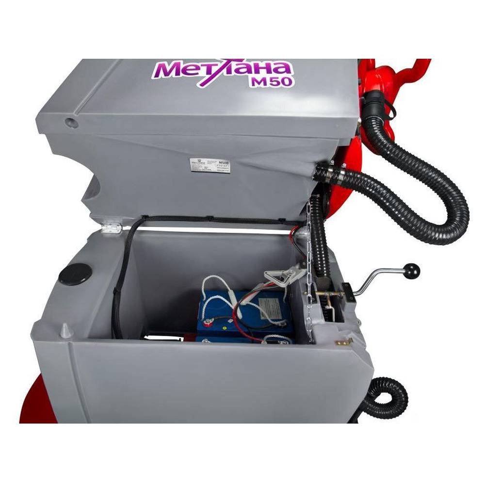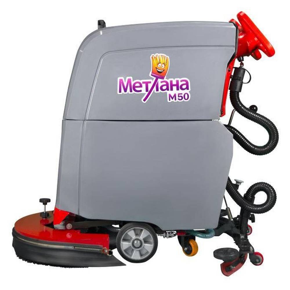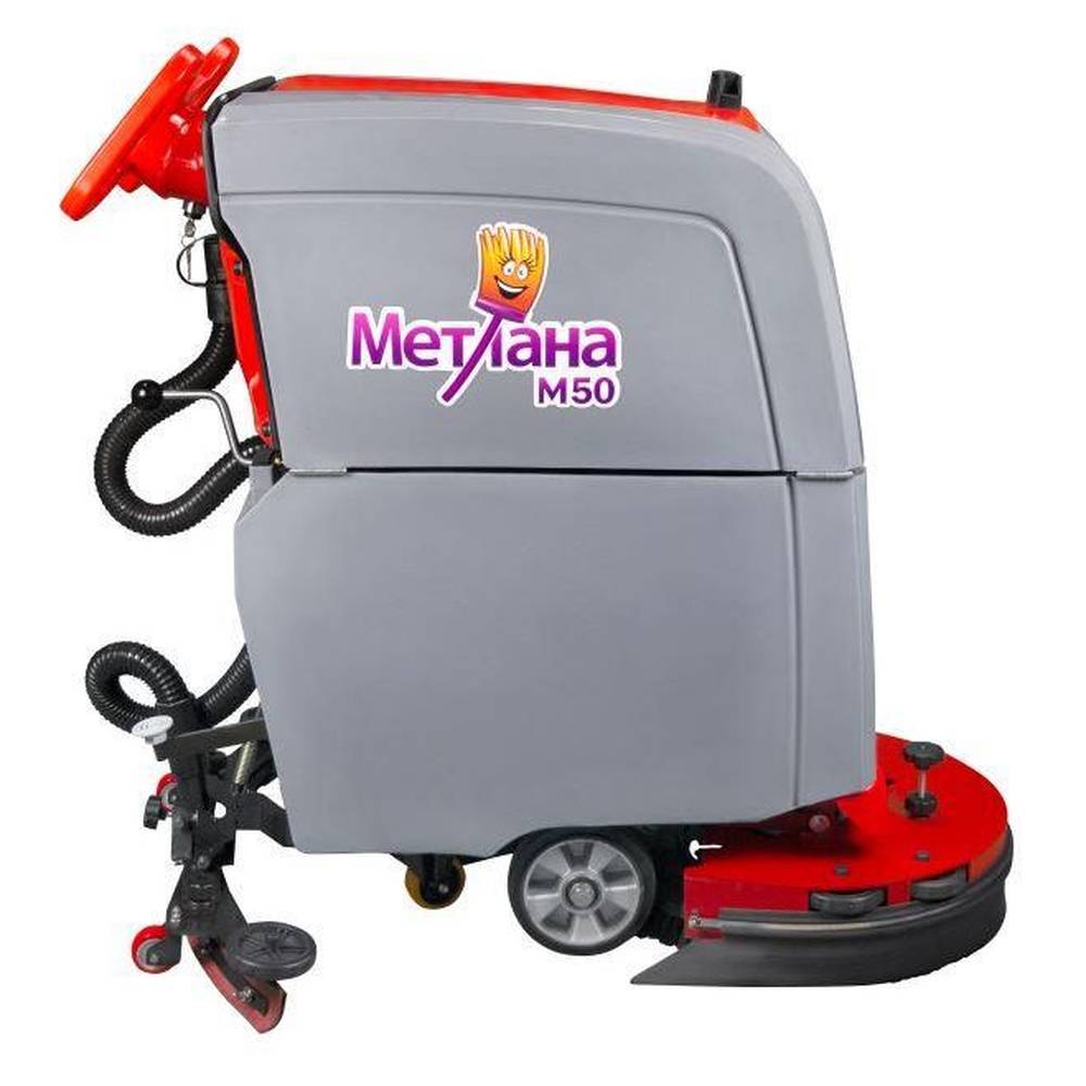Аккумуляторная самоходная поломоечная машина Метлана М50BT - поломоечная аккумуляторная машина с приводом хода (самоходная). Машина рассчитана для механизированной влажной уборки напольных покрытий. Стальная рама и ударопрочный пластик обеспечивают долгий срок службы машины. Предназначена для уборки средних площадей.