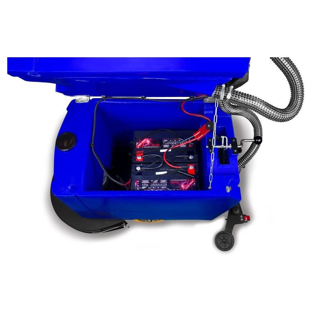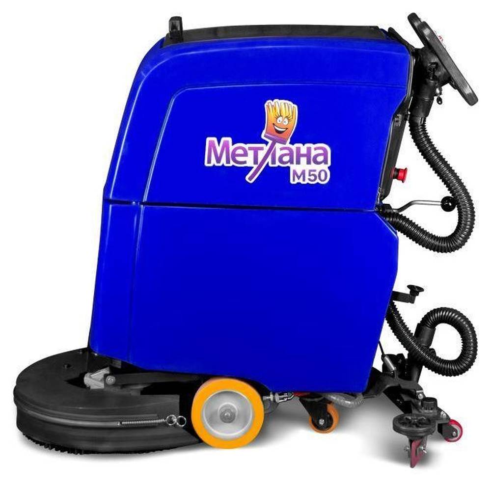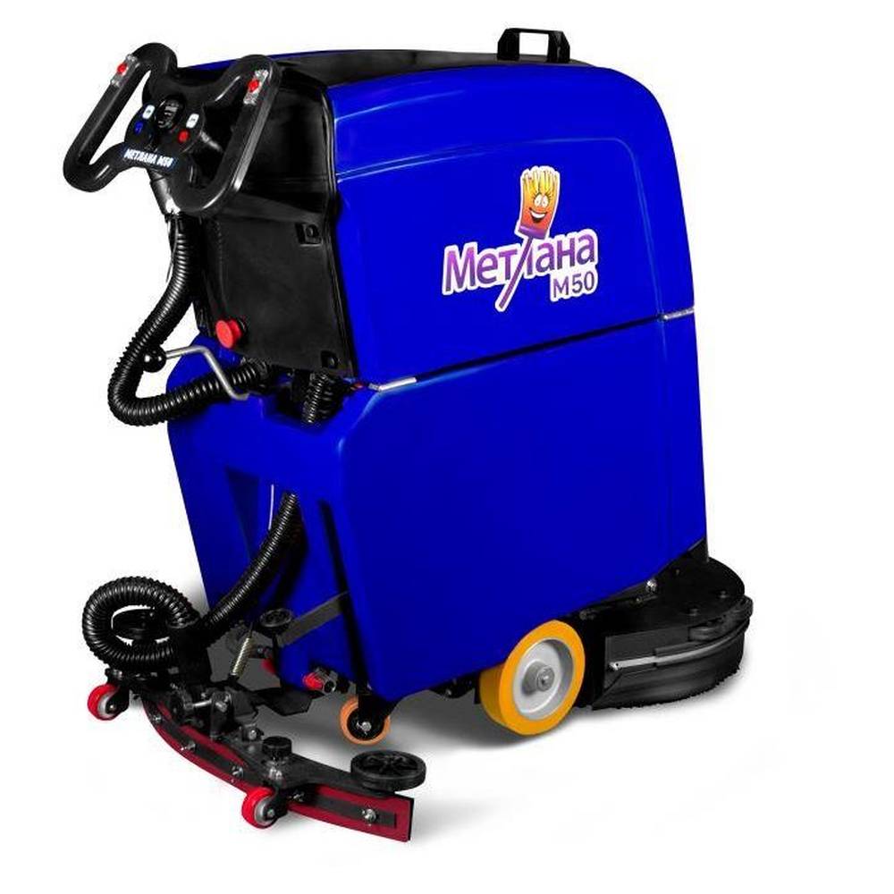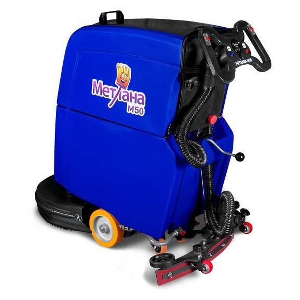 Аккумуляторная самоходная поломоечная машина МЕТЛАНА М50ВТ литий синяя - поломоечная аккумуляторная машина с приводом хода (самоходная). Машина рассчитана для механизированной влажной уборки напольных покрытий. Стальная рама и ударопрочный пластик обеспечивают долгий срок службы машины. Предназначена для уборки средних площадей.