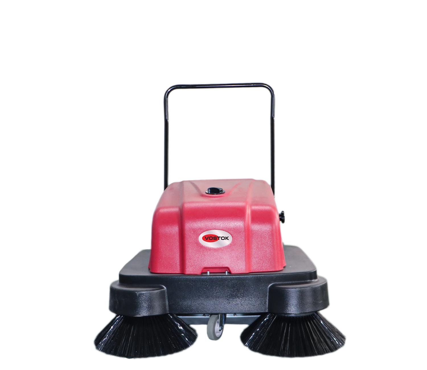 VOSTOK SW1050 - ручная аккумуляторная подметальная машина с приводом хода предназначена для уборки внутренних помещений и прилегающих территорий средних и больших площадей: складских, торговых и производственных, около домов и подъездов, на территории СТО и автозаправок, фирм и предприятий.