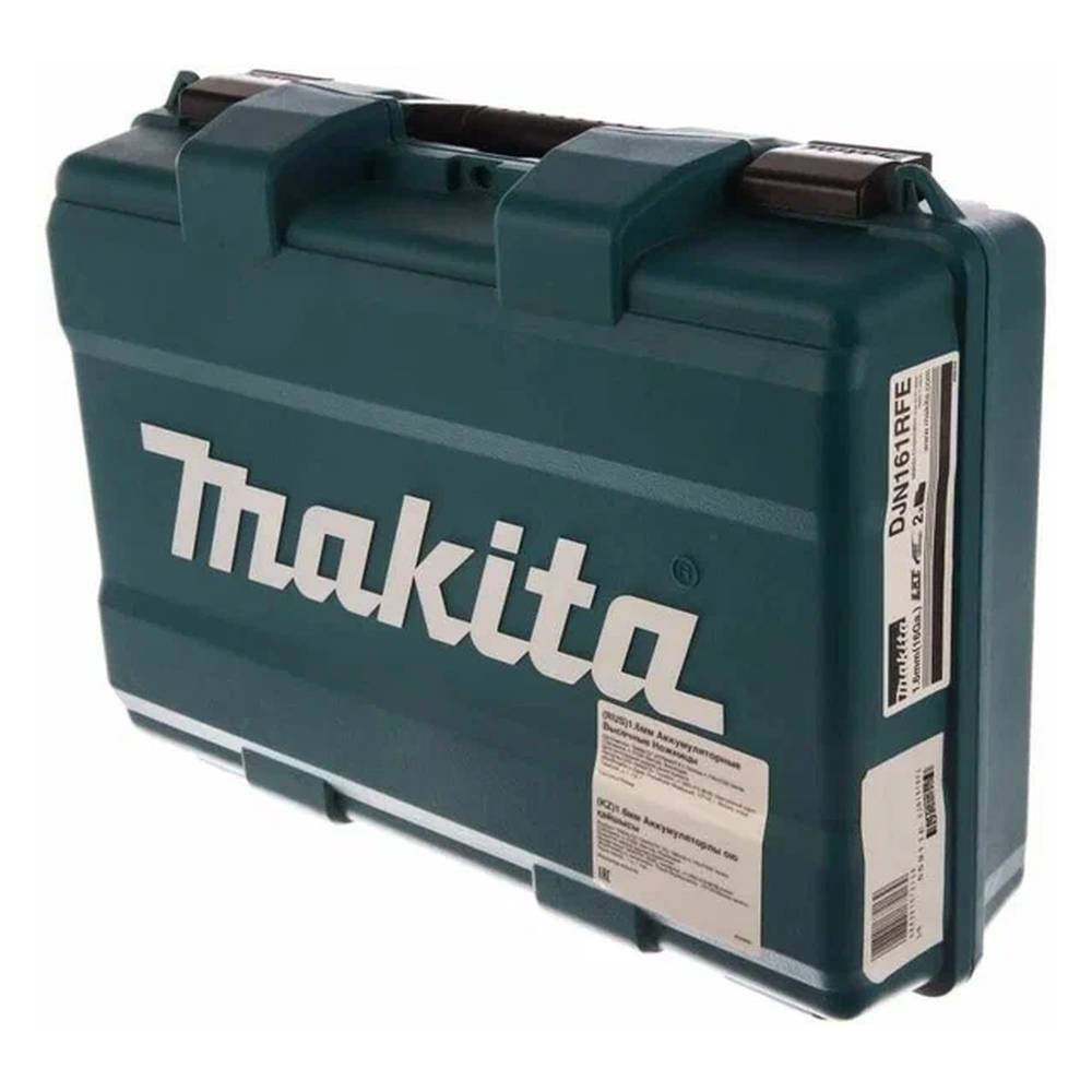 Ножницы аккумуляторные высечные Makita DJN161RFE - инструмент полупрофессионального класса, работает от литий-ионного аккумулятора, напряжением 18 В и ёмкостью 3 Ач. В комплектацию входят две аккумуляторные батареи. Ножницы предназначены для работы с железом, листовой сталью, гофрированным листовым металлом. Число ходов 1900 ход/мин. Имеют функцию удаления стружки. Есть индикатор заряда аккумулятора, позволяет следить за разрядом батареи и своевременно подзаряжать аккумуляторное устройство для более длительного рабочего процесса. Вес товара 2,2 кг. Для транспортировки и хранения оборудования предусмотрен специальный кейс.
