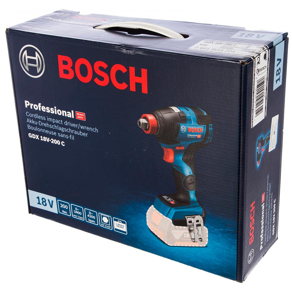 Аккумуляторный ударный гайковерт Bosch GDX 18V-200 C 0.601.9G4.204 имеет оптимальное соотношение длины корпуса к крутящему моменту и подходит для работы в труднодоступных местах.