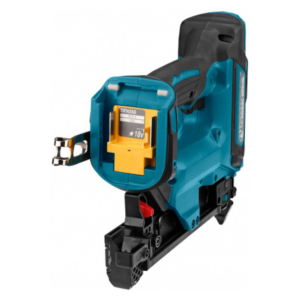 Гвоздезабиватель Makita DFN350ZJ без шланга. Встроенный компрессор при забивании гвоздей обеспечивает такие же возможности, что и пневматический гвоздезабиватель. Подходит для этапа финишной обработки и обшивки, включая установку панелей и отделочных материалов. Нейлер используется с гвоздями 1,2 мм, имеющими длину 15–35 мм. Поставляется в кейсе Makpac. Аккумулятор и зарядное устройство не входят в комплект.