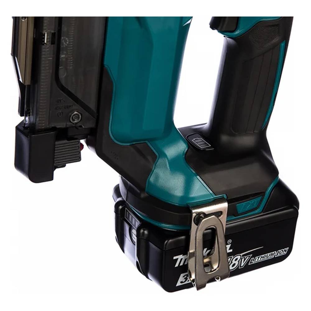 Гвоздезабиватель аккумуляторный Makita DPT353RFE – маневренный и производительный инструмент с LXT технологией, простой и удобной установкой гвоздей в магазин. Работает от литий-ионной батареи напряжением 18 В. В комплектацию входят две аккумуляторные батареи, емкостью 3 Ач. Двойной курок предохраняет от случайного нажатия. Встроенная светодиодная подсветка с функцией послесвечения для точной и качественной работы в местах в недостаточной видимостью. Рукоять обрезиненная с нескользящей поверхностью эргономичной формы для крепкого удержания при интенсивных и продолжительных нагрузках. Количество гвоздей в магазине 100. Длина гвоздей 15, 18, 25, 30 мм. Тип гвоздей 23GA. Вес товара 2,1 кг. Есть боковая скоба для переноски инструмента на ремне.