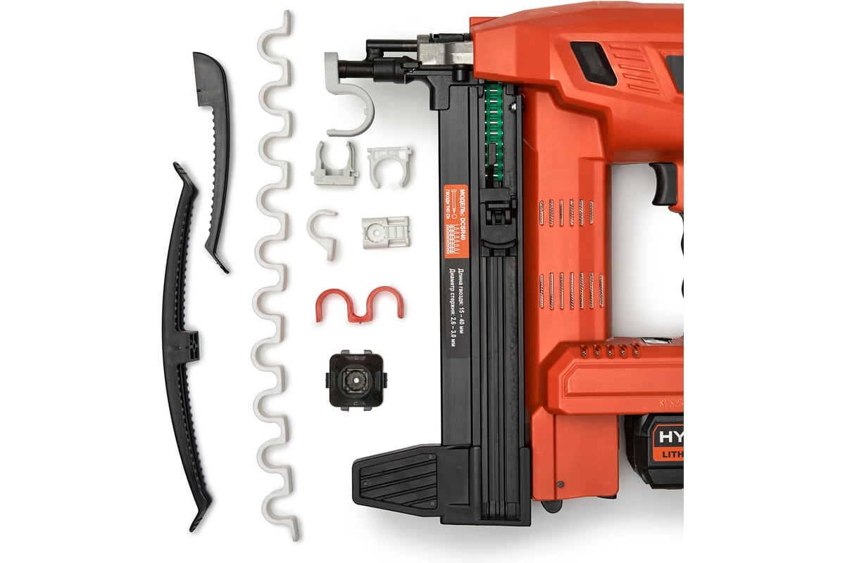 Новая модель пистолета HYBEST DCSR40 вобрала в себя преимущества других технологий прямого монтажа иявляется наиболее универсальной моделью для электромонтажа и общестроительных работ по бетону, кирпичу и другим твердым основаниям. Высокая энергия выстрела в 100 Дж, питание от Li-ion аккумулятора, отсутствие необходимости проводить техническое обслуживание, доработанная конструкция и повышенная устойчивость с холоду.