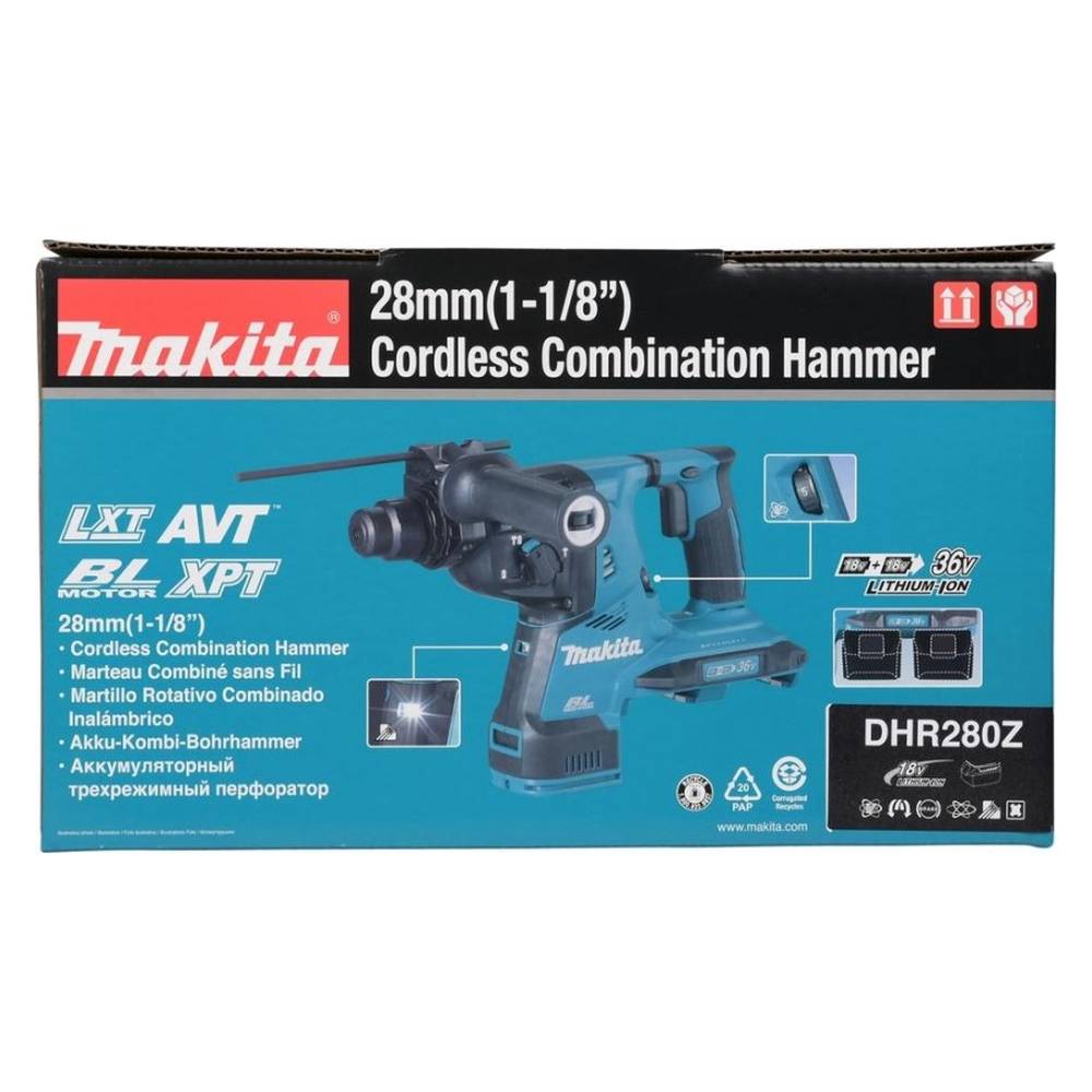 Аккумуляторный перфоратор Makita DHR280Z предназначен для сверления, бурения и долбления разных материалов. Инструмент работает от 2 Li-Ion аккумуляторов 18 В емкостью до 6 А/ч (АКБ и ЗУ в комплект не входят).
