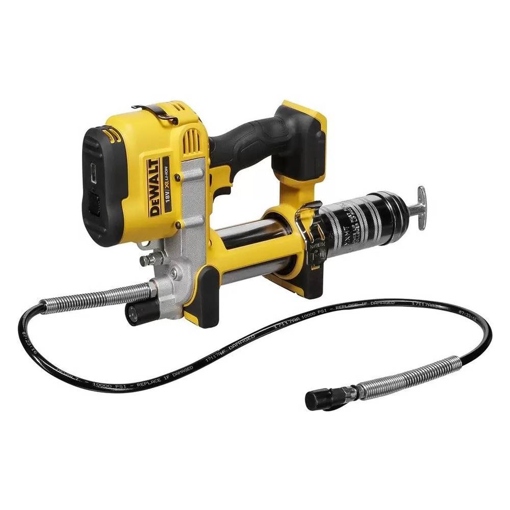Аккумуляторный смазочный пистолет DeWalt DCGG571M1 применяется для технического обслуживания тяжелой, сельскохозяйственной или другой крупной техники. Двигатель обеспечивает максимальное давление до 690бар давления и 147г смазки в минуту. Триггер с переменной скоростью позволяет регулировать скорость подачи смазки. Может заполняться наливом или использоваться со стандартными картриджами со смазкой на 400г.