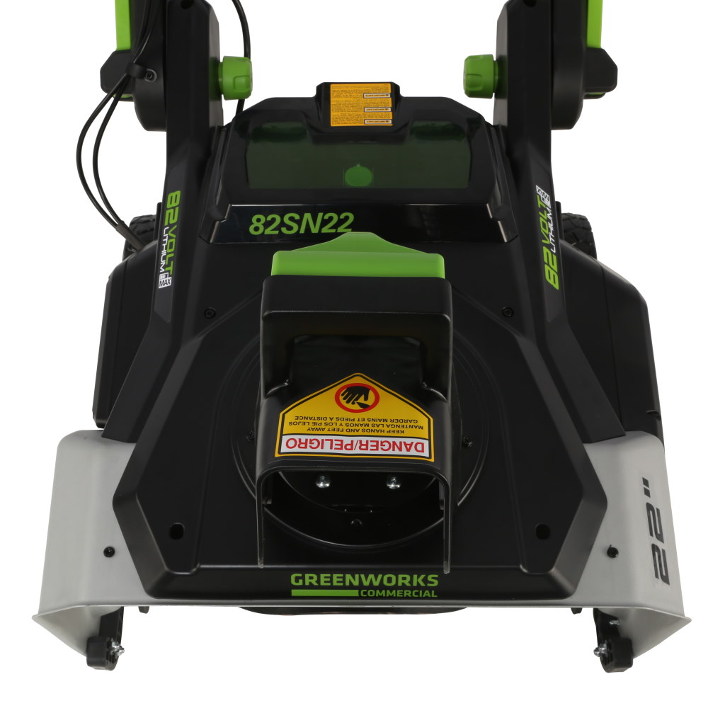 Аккумуляторный снегоуборщик Greenworks GD82 (без акк, без з/у) легкий и удобный в эксплуатации с бесщеточным мотором DigiPro, который питается от литий-ионной аккумуляторной батареи напряжением 82В. Есть функция защиты от непреднамеренного пуска. Ширина уборки 559мм, высота захвата 330мм. Направление и угол выброса снега можно настроить. Дальность выброса до 8м. Шнек из армированного пластика, не повреждает поверхности. Яркие светодиодные фары для работы при плохой видимости и в темное время суток. Снегоуборщик имеет слот на два аккумулятора – рабочего и запасного. Когда первый аккумулятор разряжается, достаточно просто поменять аккумуляторы местами. Имеет компактные размеры и небольшой вес.