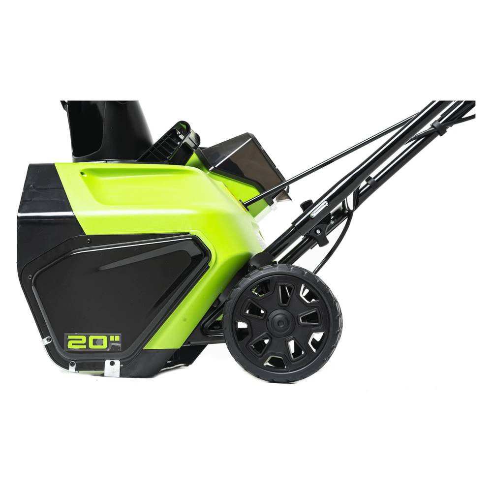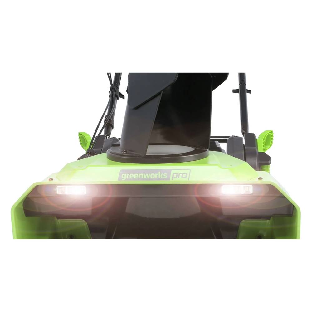 Аккумуляторный снегоуборщик Greenworks GW GD60PST предназначен для очистки от снега небольших и средних по площади территорий, например, около дома или гаража, а также пешеходных дорожек. Захват шириной 51см и глубиной 25см оптимален для расчистки садовых дорожек. Дальность выброса снега до 6 метров, регулируется вручную. Направление выброса регулируется рычагом с места оператора в диапазоне 0-180 градусов. Шнек из армированного пластика не повреждает декоративные покрытия и, в отличии от металлического шнека, позволяет снимать снежный покров до основания. Две LED фары для комфортной работы при недостаточном освещении. Кнопка-предохранитель защищает от случайного включения. Для удобства хранения ручка снегоуборщика складывается.