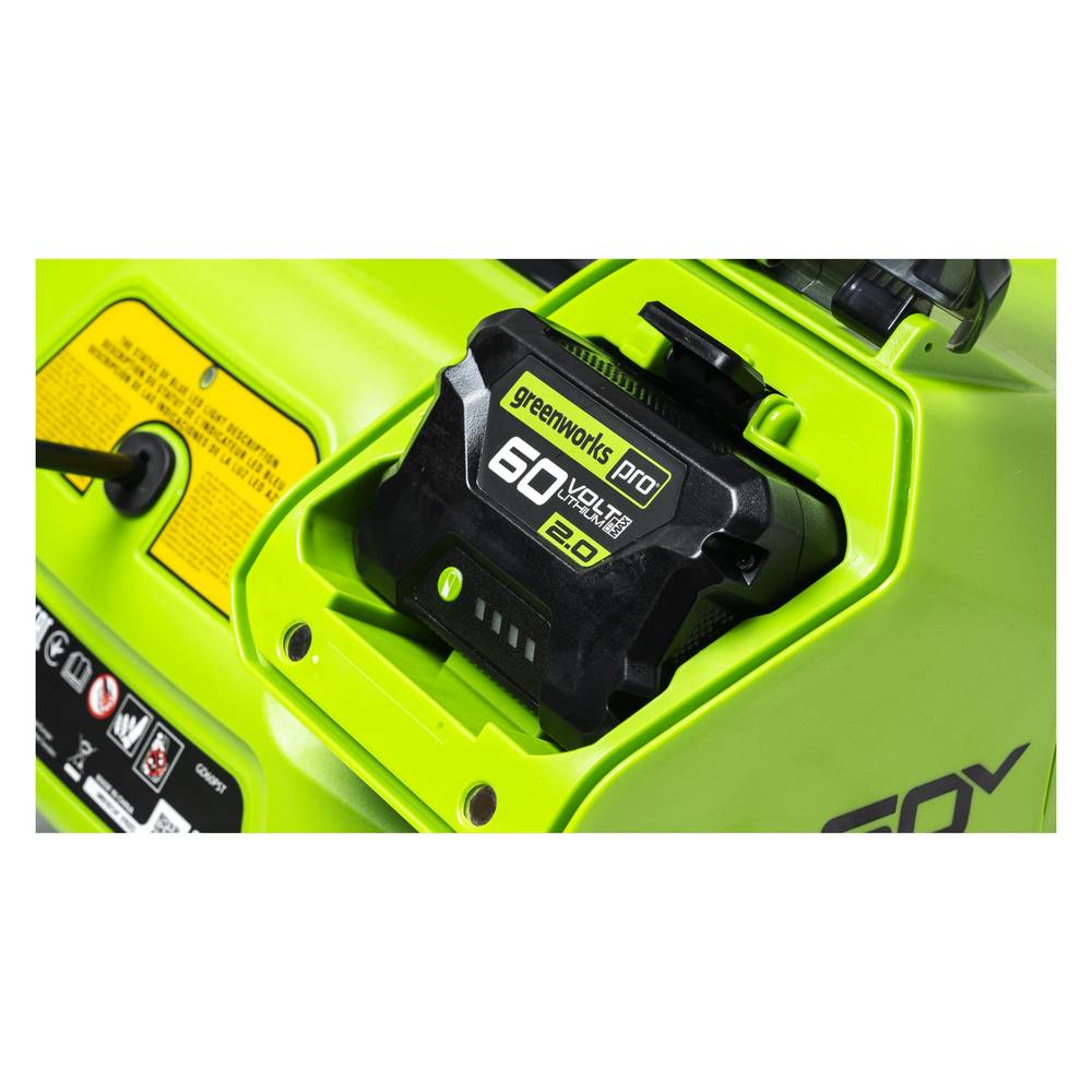 - Единая аккумуляторная система Greenworks 60V - позволяет использовать один аккумулятор с различным электроинструментом одной серии