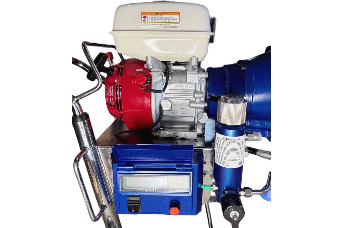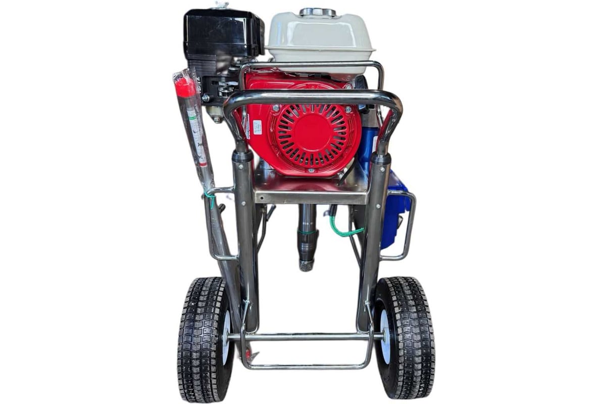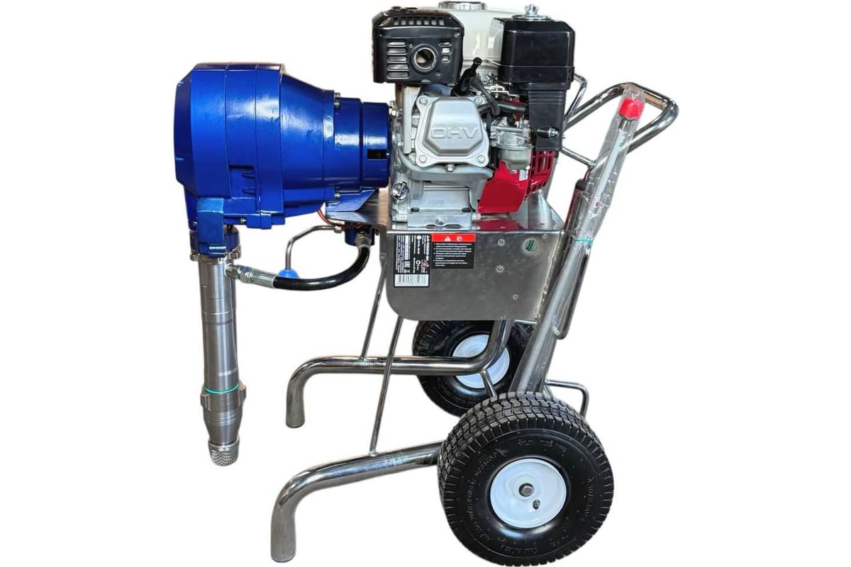 Мощный окрасочный аппарат, с двигателем мощностью 4,1 кВт, для вязких красок, огнезащитных составов и штукатурки. Оснащен бензиновым двигателем. Рекомендуемый бензин АИ-92, АИ-95