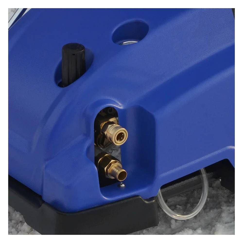 В основе конструкции — надёжный трёхплунжерный насос и защищённый электродвигатель. Аппарат оснащён системами безопасности: термодатчиком от перегрева и функцией «Total_Stop», предотвращающей холостой ход. Мобильная рама с колёсами и съёмная ручка обеспечивают удобство перемещения.