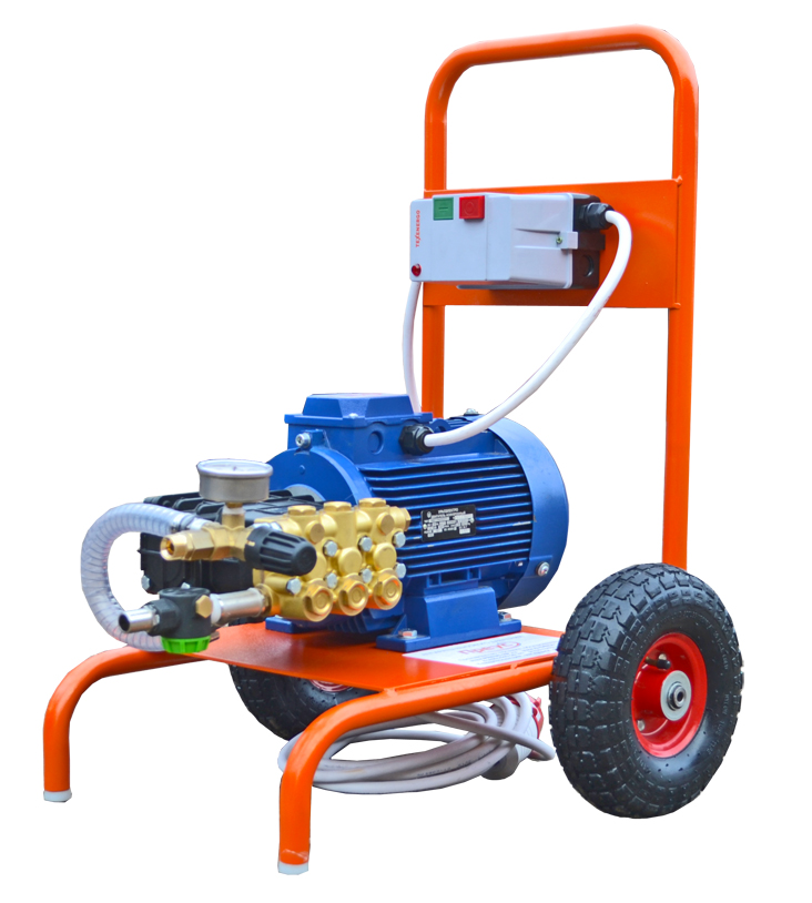 Гидродинамическая машина высокого давления Преус Е1112А с электрическим двухфазным двигателем мощностью 3,0 кВт, приводящим в действие плунжерный итальянский насос Udor, который нагнетает рабочее давление в 110 бар. Расход воды достигает 12 литров в минуту.