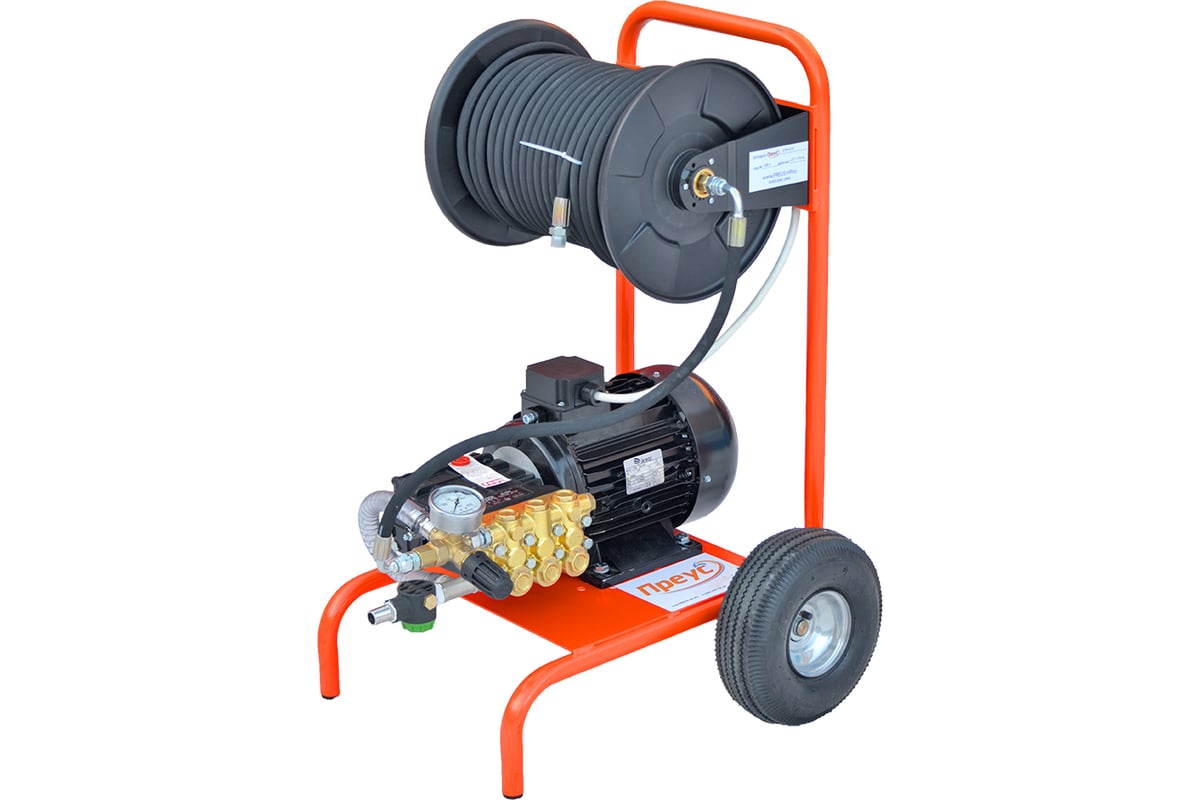 Компактная гидродинамическая машина ПРЕУС Е1112К высокого давления применяется для внутридомовой очистки труб, стояков, каналов, лежаков и т.д. диаметром до 200 мм на длину до 40 м с электрическим двигателем 2.2 кВт, 220 В.