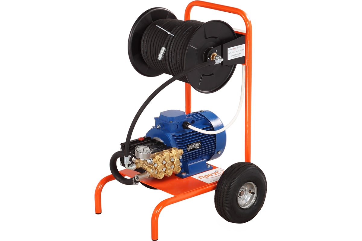 Компактная гидродинамическая машина ПРЕУС Е1521К, рабочим давлением 150 бар и потоком воды 21 л/мин,высокого давления применяется для внутридомовой очистки труб, стояков, каналов, лежаков и т.д. диаметром до 250 мм на длину до 70 м с электрическим двигателем 5,5 кВт, 380 В. Аппарат может быть использован и для мойки, очистки и дезинфекций поверхностей.