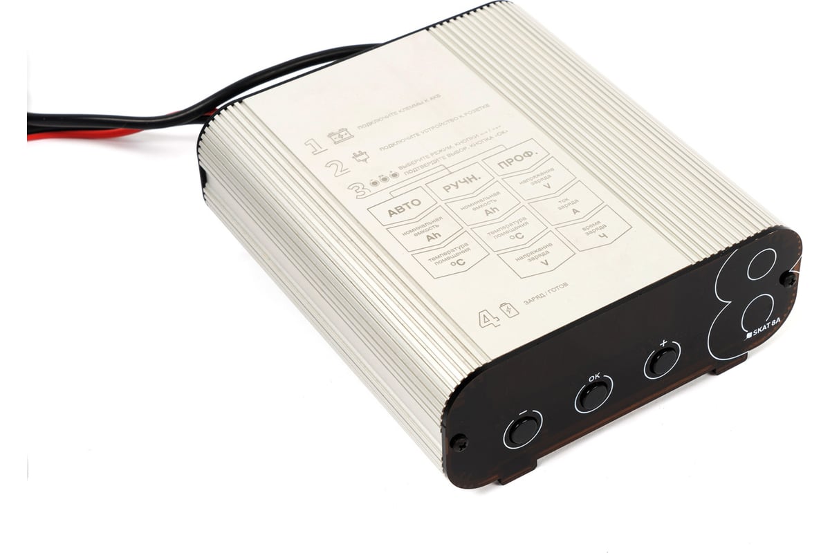 SKAT 8A – это компактное автоматическое зарядное устройство для аккумуляторов (АКБ), в котором реализованы функции профессионального лабораторного оборудования.