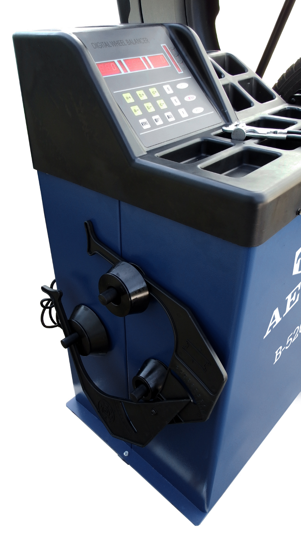 В-520 – балансировочный станок с улучшенной системой определения параметров колеса. Эта модель предусматривает диагностику колес весом до 65 кг на дисках диаметром до 24 дюймов, с точностью балансировки до 1 г.