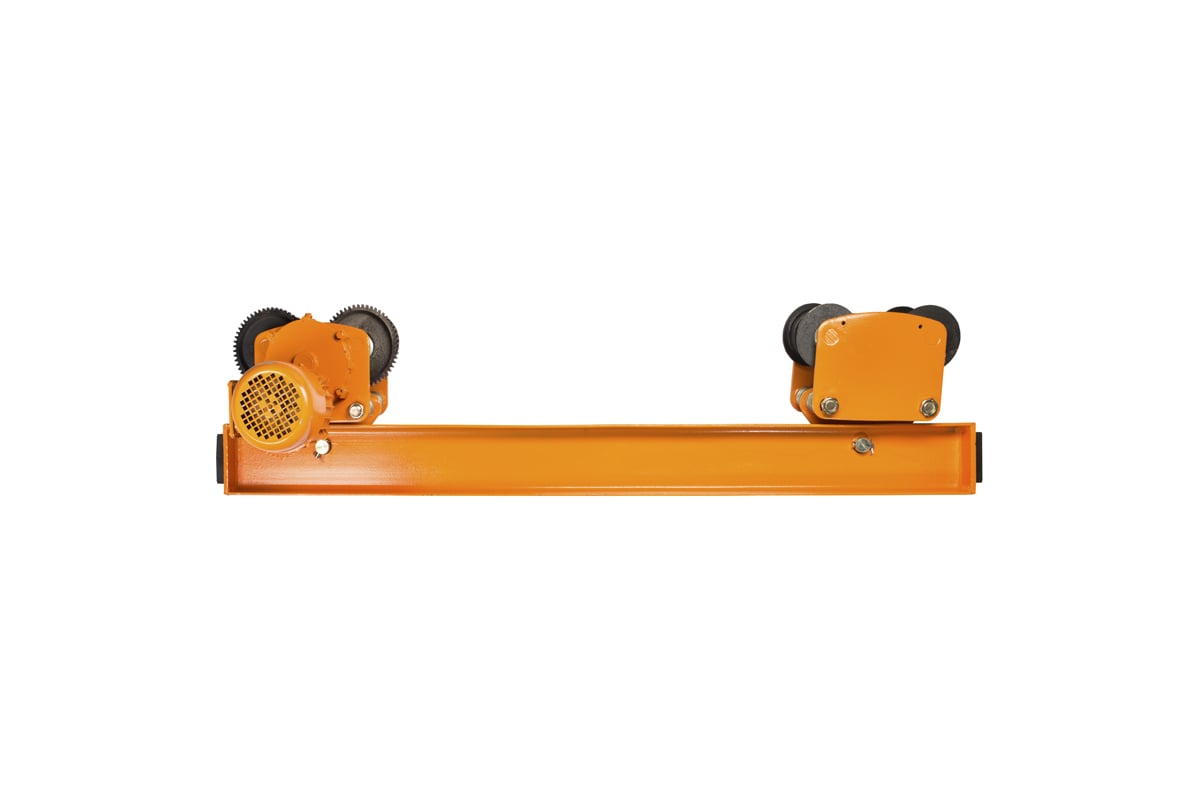 Подвесная концевая балка Тор г/п 1,0 т 119104 представляет собой составную часть мостового крана, изготовленную из стали. В устройстве используются ходовые тележки вместо ходовых колёс, которые предназначены для подвешивания и перемещения по крановому пути. Одна из них оснащена электроприводом для перемещения балки вдоль пролёта.