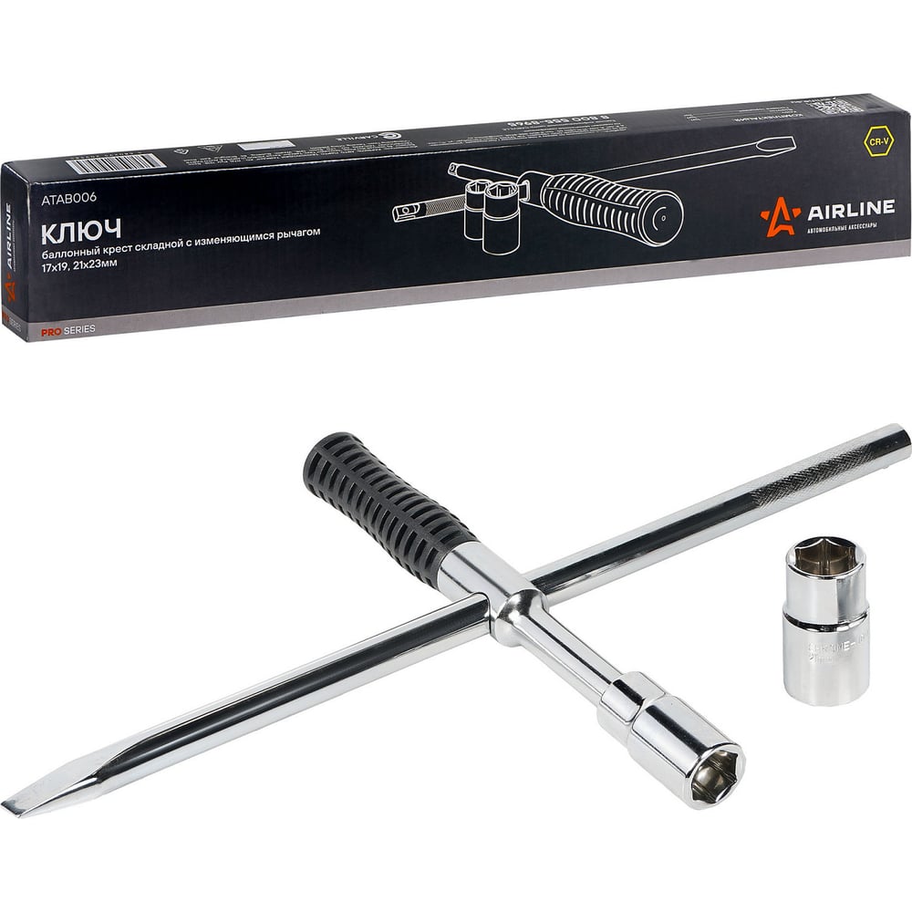 Баллонный складной ключ крест Airline PRO 17x19, 21x23 мм, с изменяющимся рычагом ATAB006 в сложенном состоянии очень компактен и занимает мало места. В рабочем положении возможно изменение рычага для облегчения откручивания сложного крепежа. Артикул: ATAB006 Состав: металл Размер: 17x19мм, 21x23мм Длина: 400мм