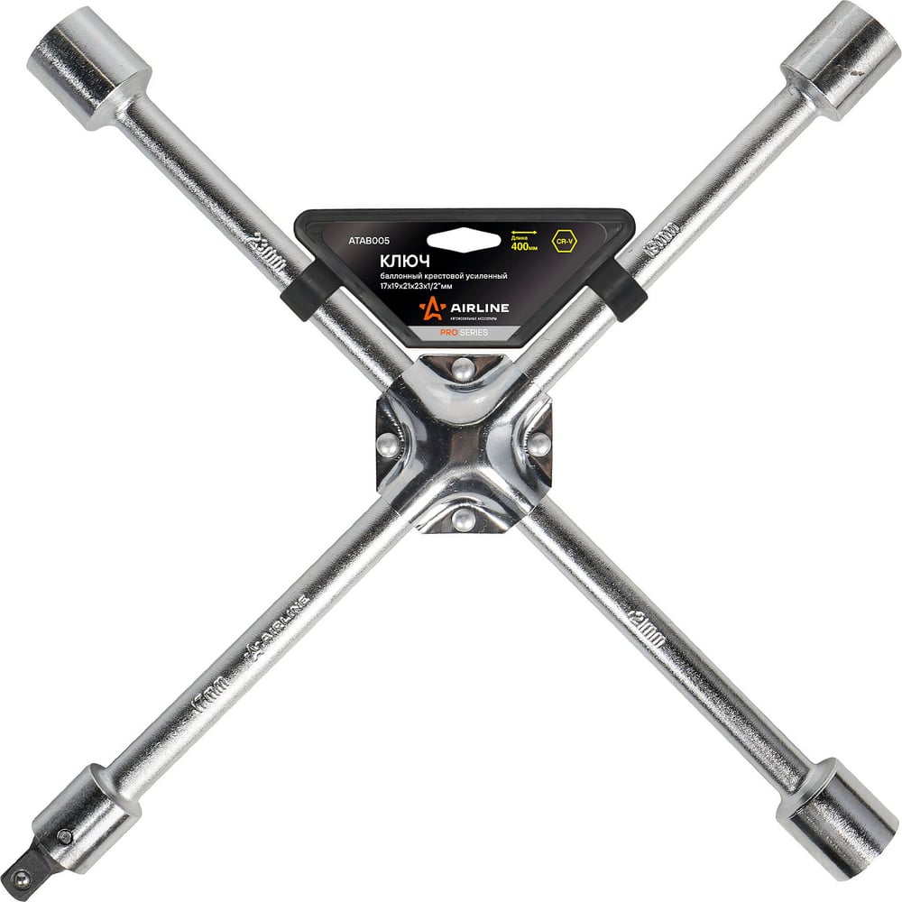 Баллонный крестовой усиленный ключ Airline PRO 17x19x21x23x1/2", 400 мм ATAB005 изготовлен из хромованадиевой стали. Артикул: ATAB005 Состав: металл Размер: 17x19x21x23x1/2" Длина: 400мм