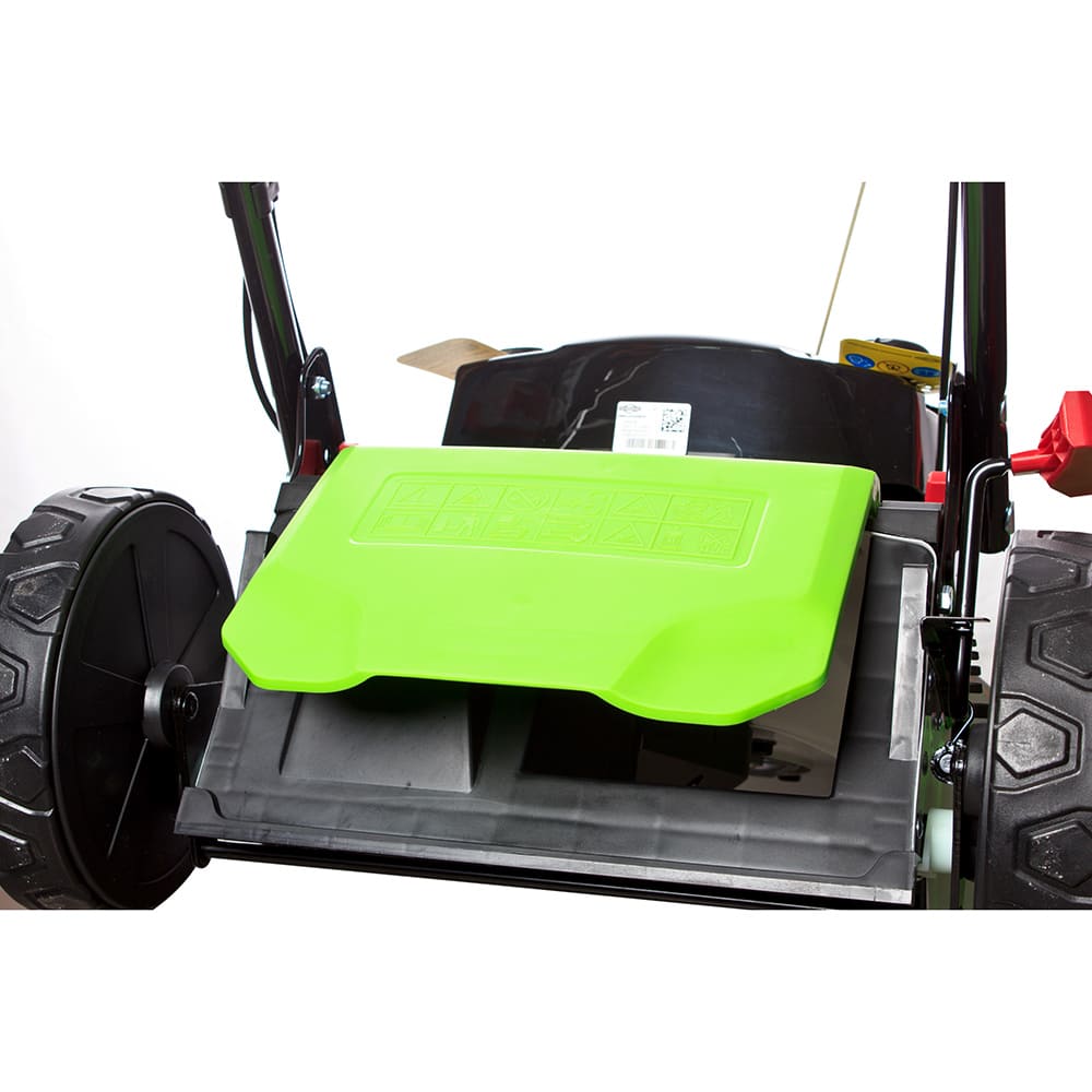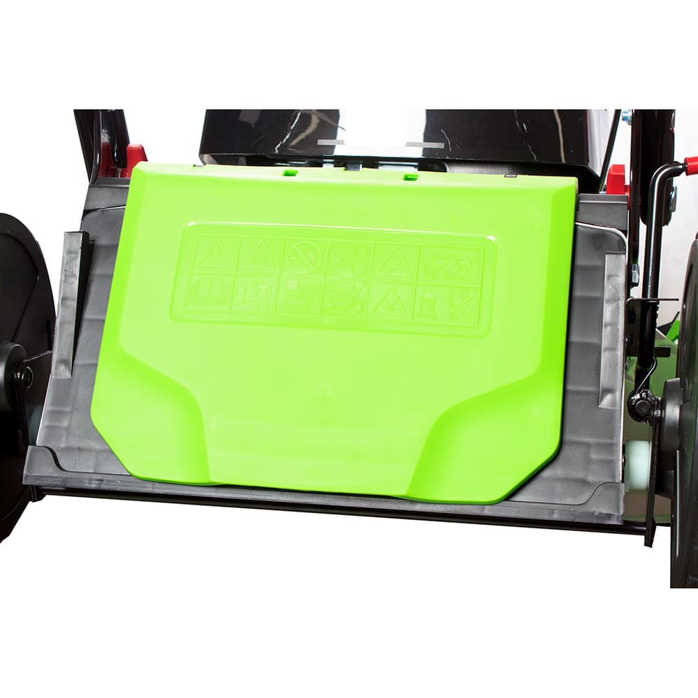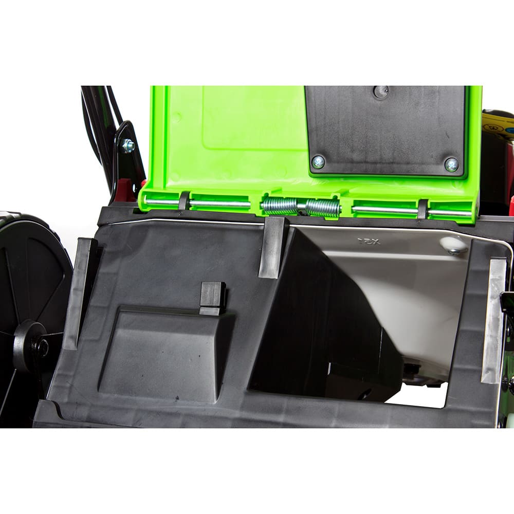 - Вместительный травосборник - позволяет поддерживать чистоту на обработанном участке и упрощает утилизацию травы