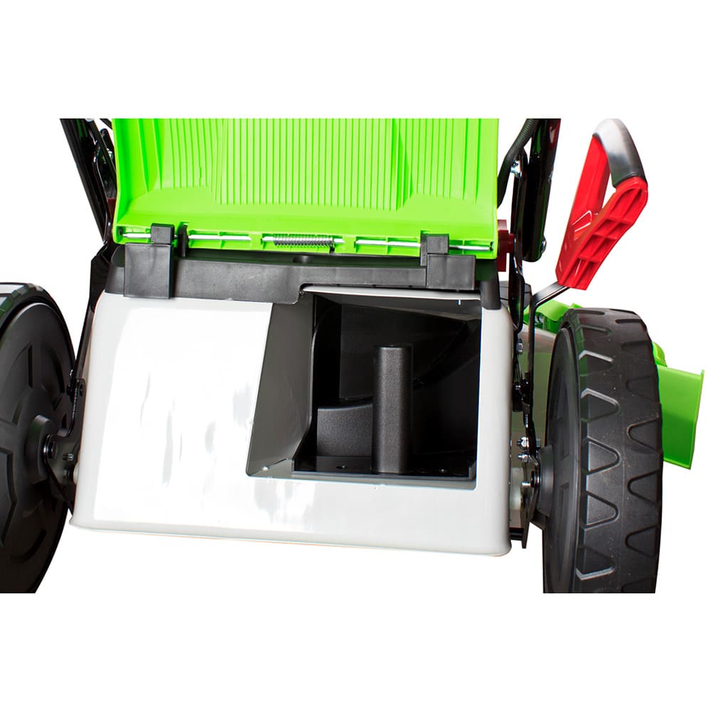 - Вместительный травосборник - позволяет поддерживать чистоту на обработанном участке и упрощает утилизацию травы