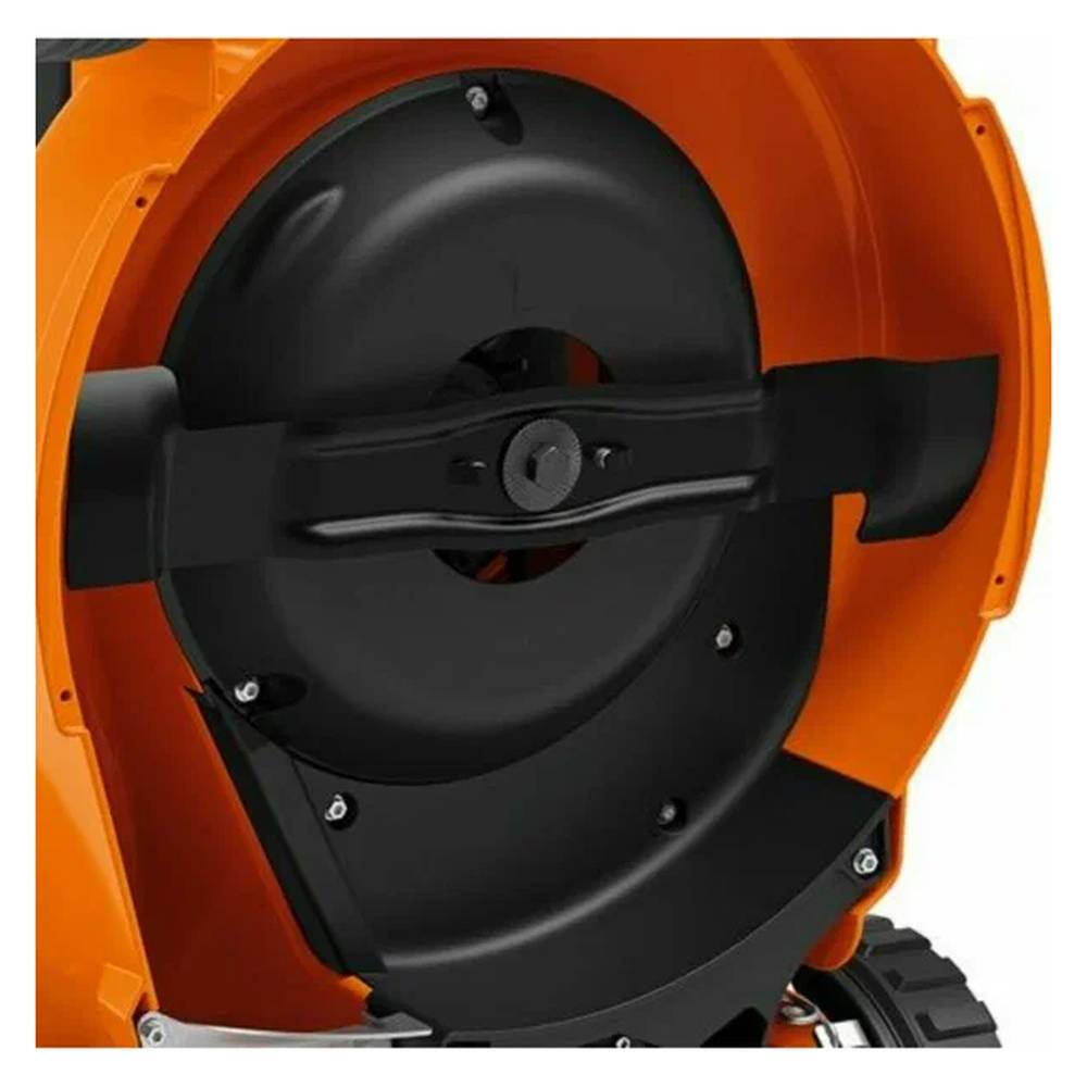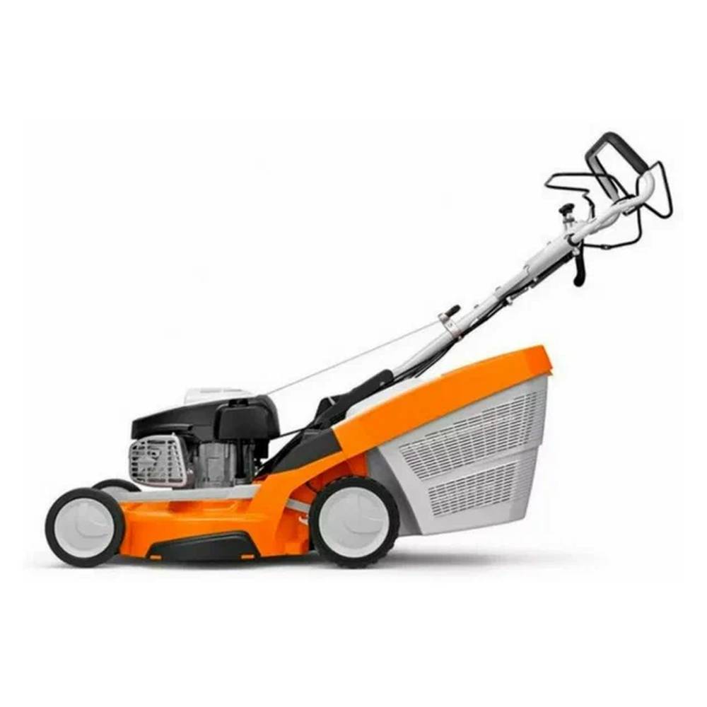 Бензиновая газонокосилка Stihl RM 650.0 V оснащена 4-тактным бензиновым двигателем и обладает максимальной скоростью перемещения 5.5км/ч. Такой производительности достаточно для обработки территории площадью до 2000 м2. Скорость движения конструкции регулируется рукояткой на панели управления. Высота стрижки выставляется рычагом, расположенным по центру корпуса. Всего доступно 6 ступеней для точной настройки – от 25 до 85мм. Выбор зависит от требований к газону и того, насколько густым является покров. Для того, чтобы вовремя очищать бак, предусмотрен индикатор заполнения, который оповестит о необходимости обслуживания. Конструкция устройства позволяет подключать комплект для мульчирования, который приобретается отдельно.