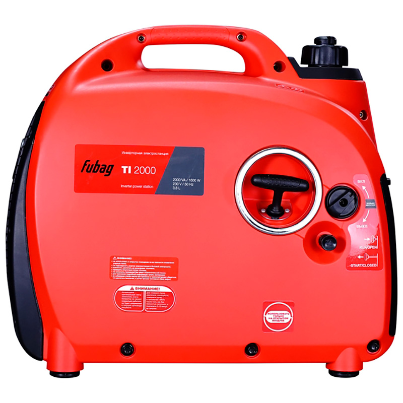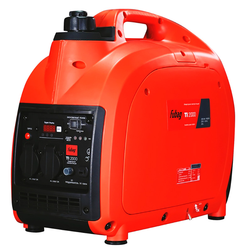 Бензиновый генератор инверторный FubagTI 2000 обеспечит работу основных приборов и оборудования суммарной мощностью до 2.0кВА на время отключения центрального электроснабжения в течение пяти часов. Кожух из ударопрочного пластика значительно снижает шум двигателя, что позволяет размещать станцию в непосредственной близости от места работы. OHV-двигатель FUBAG с верхним расположением клапанов и синхронный альтернатор с медными обмотками ротора и статора обеспечат ресурс работы электростанции. От перегрева агрегат защищает система воздушного охлаждения.