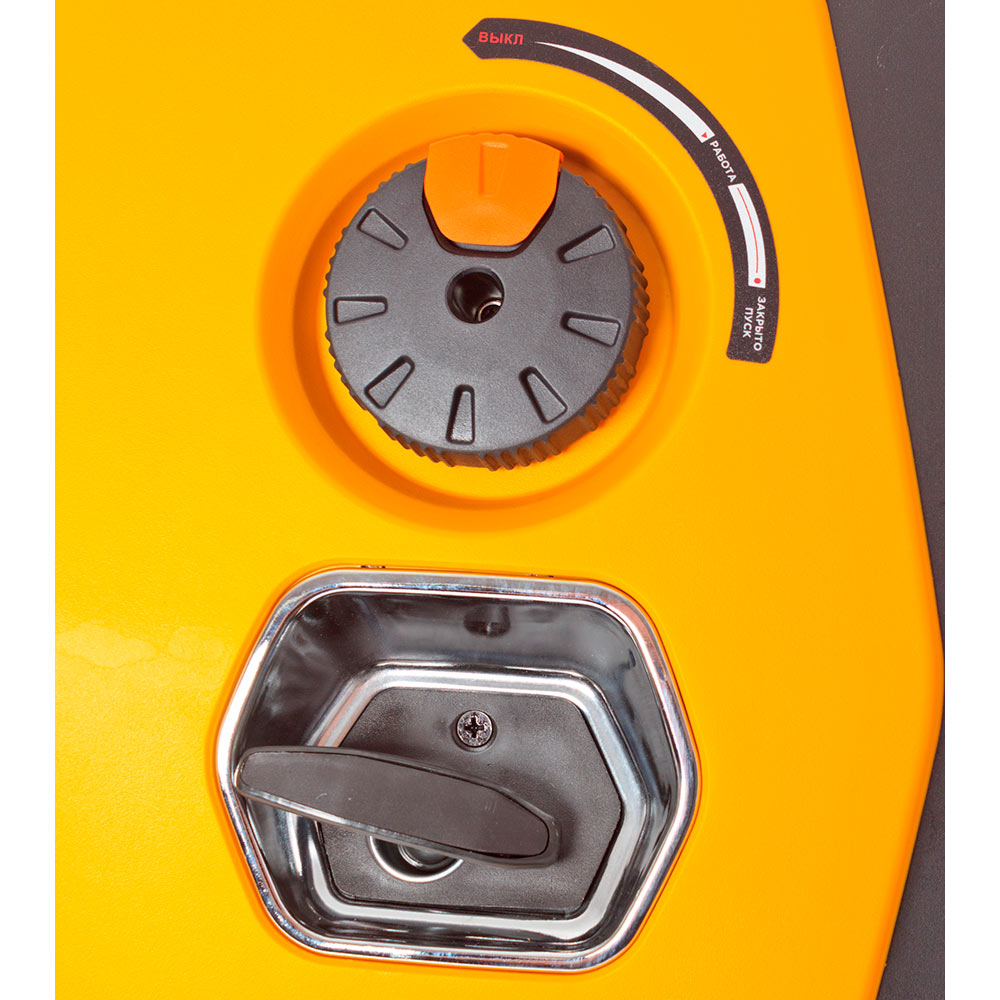 Бензиновый генератор инверторный REDVERG RD-IG3500HE оборудован разъёмом выхода постоянного тока 12В/8.3А в виде гнезда прикуривателя для присоединения например USB разъёмы. Имеет цифровой дисплей для отслеживания основных параметров: напряжения, частоты и количества моточасов и кнопку «ПУСК» с функцией задержки срабатывания 2-5 сек исключающей неправильную работу.