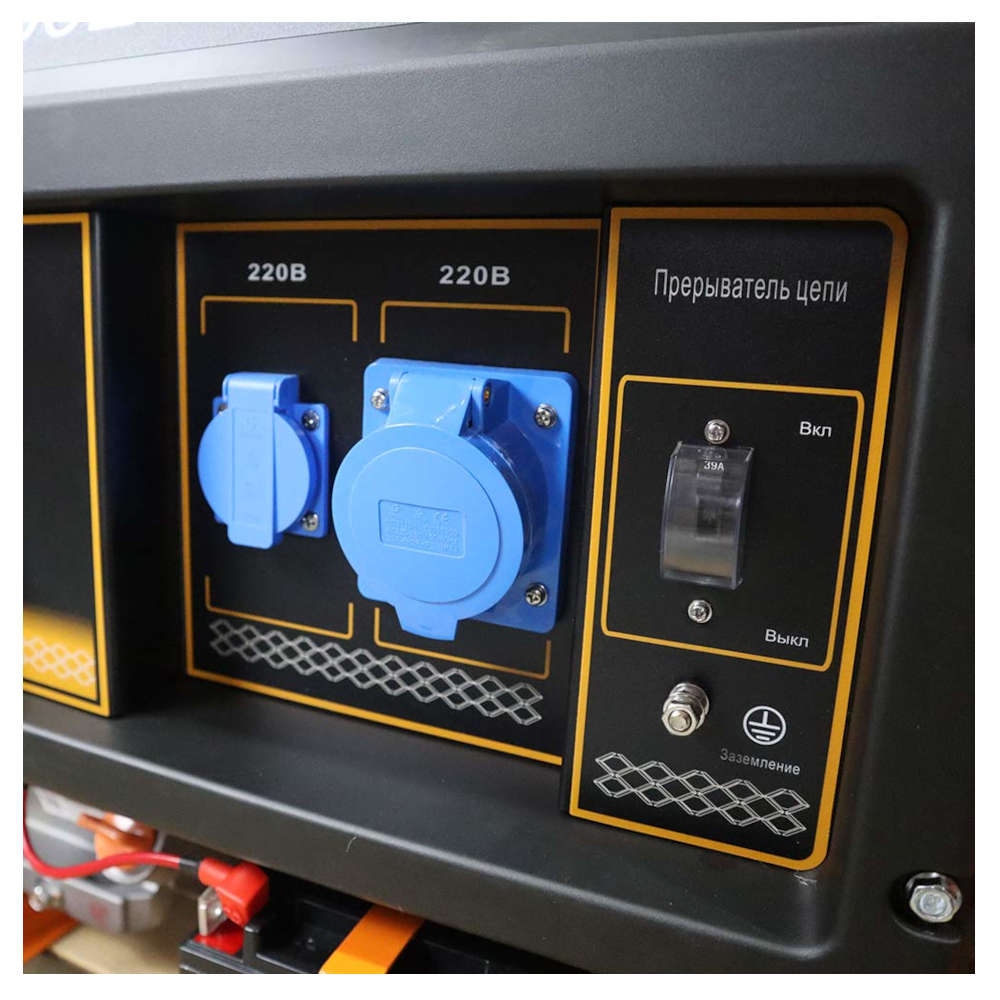 - Розетка 220В увеличенной мощности - для подключения наиболее мощных потребителей расширяет возможности использования генератора