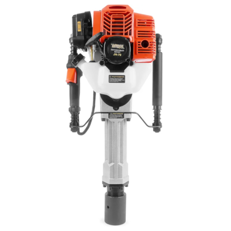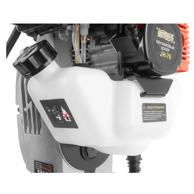 Бензниновый копер MESSER jh-70 - предназначена для забивки столбов в грунт, используется главным образом при строительстве различных ограждений. Благодаря высокой энергии удара (до 65 Дж) копер уверенно забивает даже в плотный грунт столбы до 70 мм. Для работы со столбами до 100 мм необходимо приобрести дополнительный ударный наконечник (чашку). Копер заправляется масляно-бензиновой смесью 40:1. Используется обычное масло для двухтактных двигателей. Объем бака 1.3 л. Этого объема достаточно для работы в течение более 2-х часов.