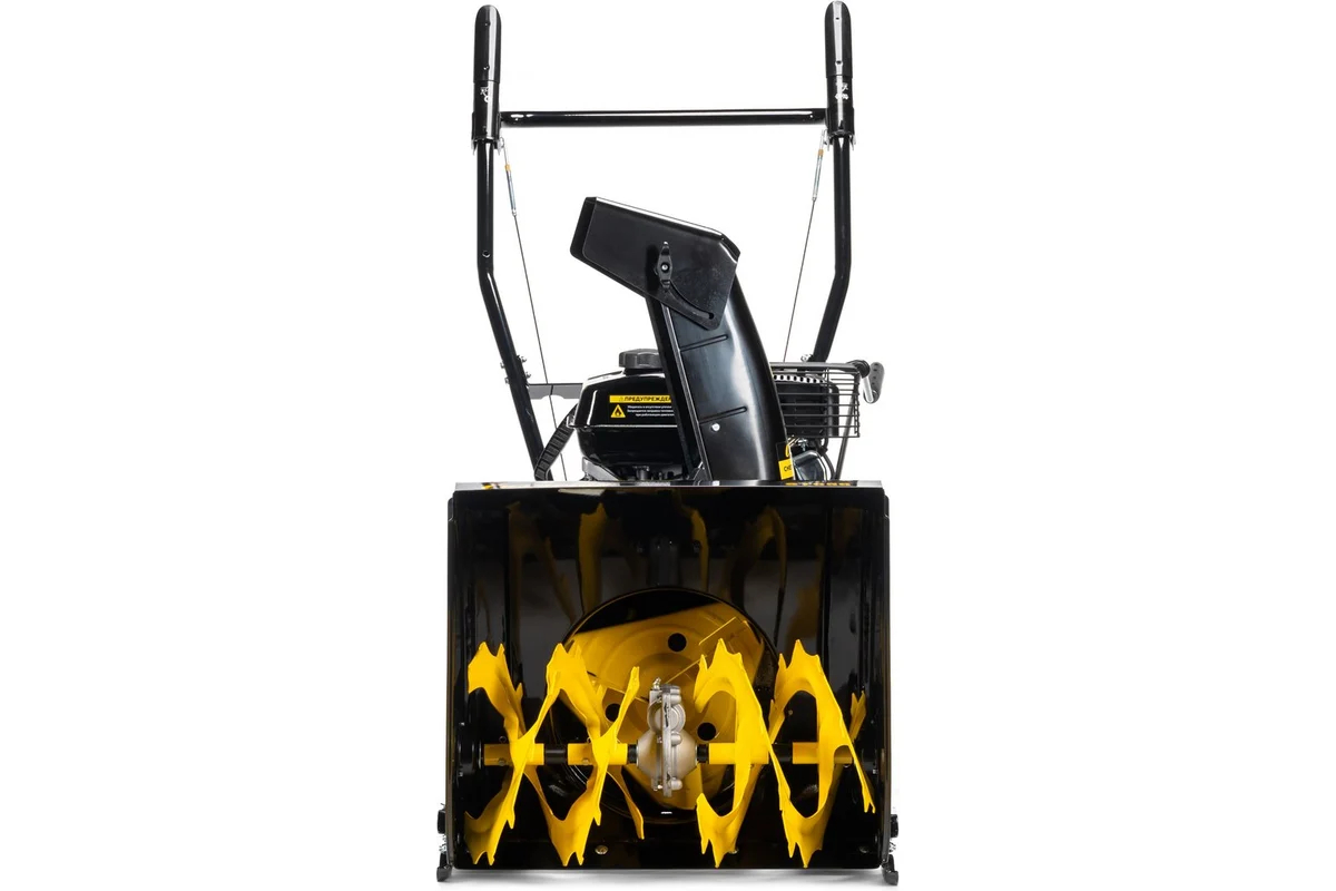 Верхнеклапанный зимний двигатель с чугунной гильзой цилиндра увеличивает срок службы снегоотбрасывателя и обеспечивает легкий запуск при низких температурах. Патрубок выброса изготовлен из стали и легко выдержит большой поток мокрого снега со льдом. Шнек снегоуборщика имеет стальные зубья, эффективно разрушающие наст, слежавшийся снег и ледяную корку.