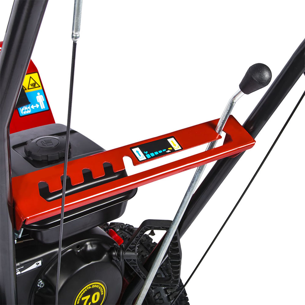 Бензиновый снегоуборщик DDE ST7066 с мощным двигателем 7 л.с. Предназначен для очистки дворовых территорий, садовых дорожек, придомовых площадок, парковок от снега. Ширина ковша составляет 660 мм, высота 560 мм. Направление желоба для выброса переработанной снежной массы можно регулировать с помощью специального рычага. Дальность выброса 12 м. Надежное сцепление с поверхностью обеспечивается колесами с глубоким протектором, это способствуют лучшей проходимости снегоуборщика по снегу, на скользких участках. Оснащен металлическим шнеком, который способен перерубать обледеневшие сугробы и слежавшиеся снежные наносы. Стартер ручной. Количество скоростей: 5 вперед и 1 назад. Вес модели 60 кг.