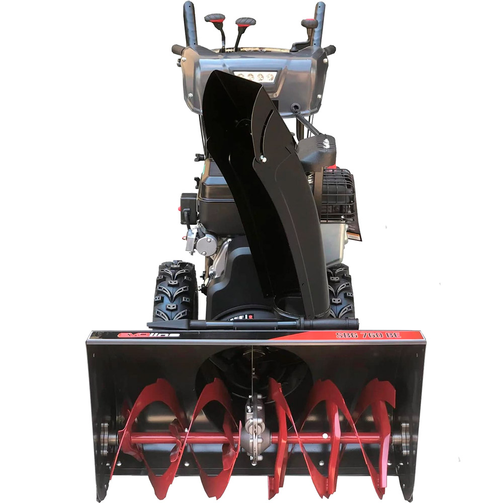 Бензиновый снегоуборщик EVOline SBG 760 подходит для очистки подъездных дорог и придомовых территорий. Управление осуществляется рычагом на панели - 6 скоростей вперед и 2 скорость назад дают возможность оператору подобрать скорость под различные условия работы в зависимости от количества выпавшего снега. Электрический запуск кнопкой обеспечивает быстрый и легкий пуск снегоуборщика до -30°С. Разработан для нерегулярного использования в любых снежных условиях с покровом снега до 30см. Регулируемая высота рукоятки для комфортного использования.