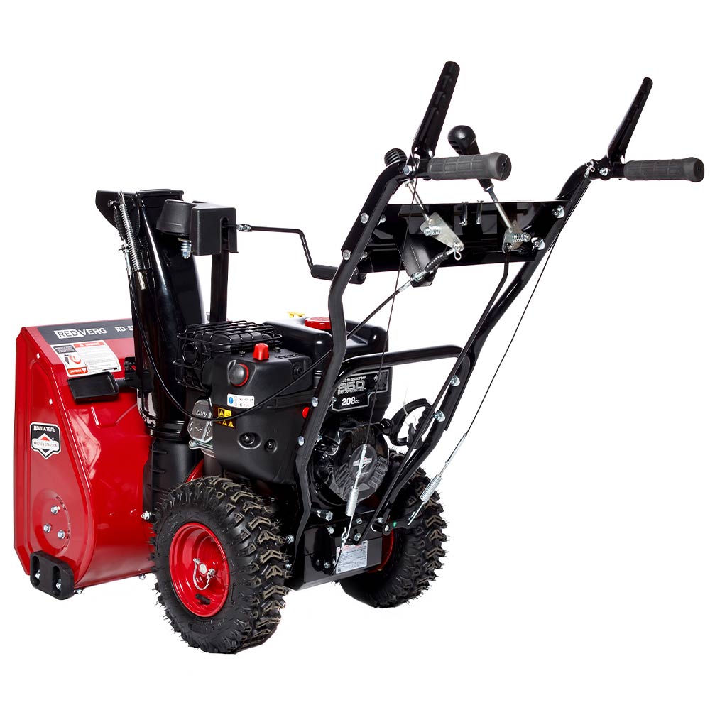 Бензиновый снегоуборщик REDVERG RD-SB53/950BS предназначен для уборки снега на больших и малых по площади территориях. Самоходный снегоуборщик оснащен мощным двигателем 6,5 л.с. Briggs&Stratton. Стартер запускается вручную. Четырехтактный мотор зимней серии с воздушным охлаждением позволяет успешно работать при низких минусовых температурах. Регулировка движения снегоуборщика и выбор режима уборки снега производится рычагами на панели управления. В зависимости от состояния снежного покрова можно выбрать одну из 5 скоростей — 4 вперед, 1 назад. Ковш 530 мм в ширину и 510 мм в высоту обеспечивает высокую производительность оборудования. Система шнеков и крыльчатка позволяют справиться со слежавшимися сугробами и настом. Техника легко скользит по площадке, благодаря двум пластиковым лыжам в нижней части ковша. Направление и дальность выброса снега настраиваются с панели управления. Снежная масса выбрасывается на расстояние до 11 м. Вес снегоуборщика 62,1 кг.