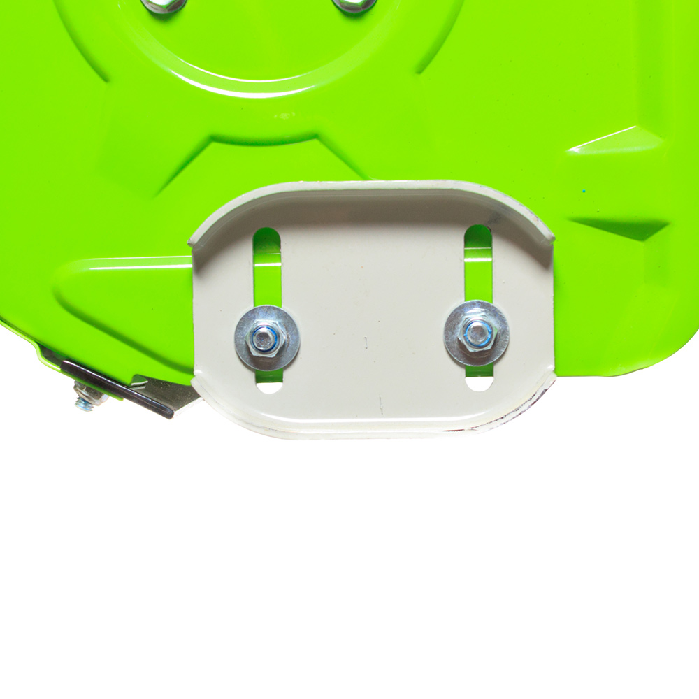 - Дальность выброса до 15 метров - позволяет отбрасывать снег за пределы участка, настраивая поворот желоба
