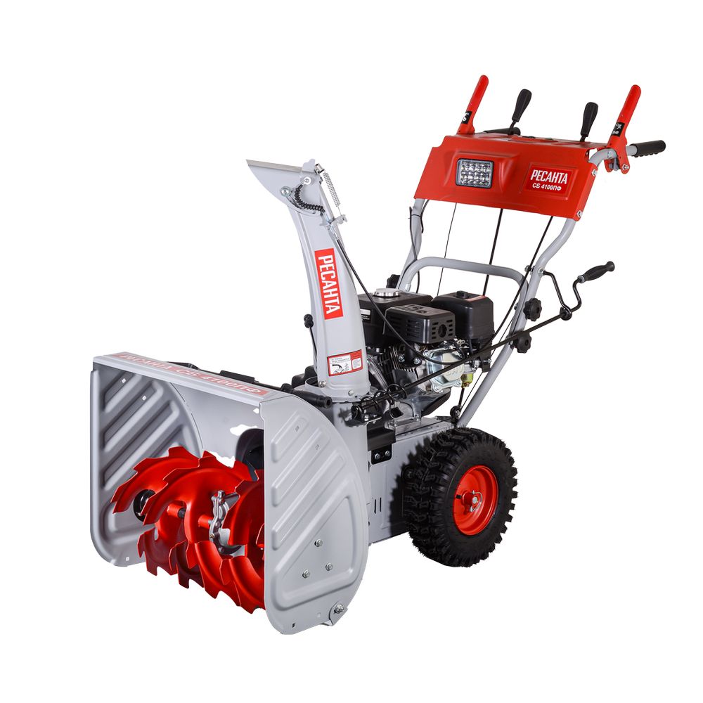 Бензиновый снегоуборщик Ресанта СБ 4100ПФ – колесная самоходная техника, созданная для очистки от снега небольших территорий частных домов и загородных дач. Агрегат работает на бензине, объем бака составляет 3,6 л. Оснащен 4-тактным двигателем мощностю 7,0 л.с. За одно прохождение способен обработать полосу 56 см шириной. Высота захвата увеличена до 54 см.