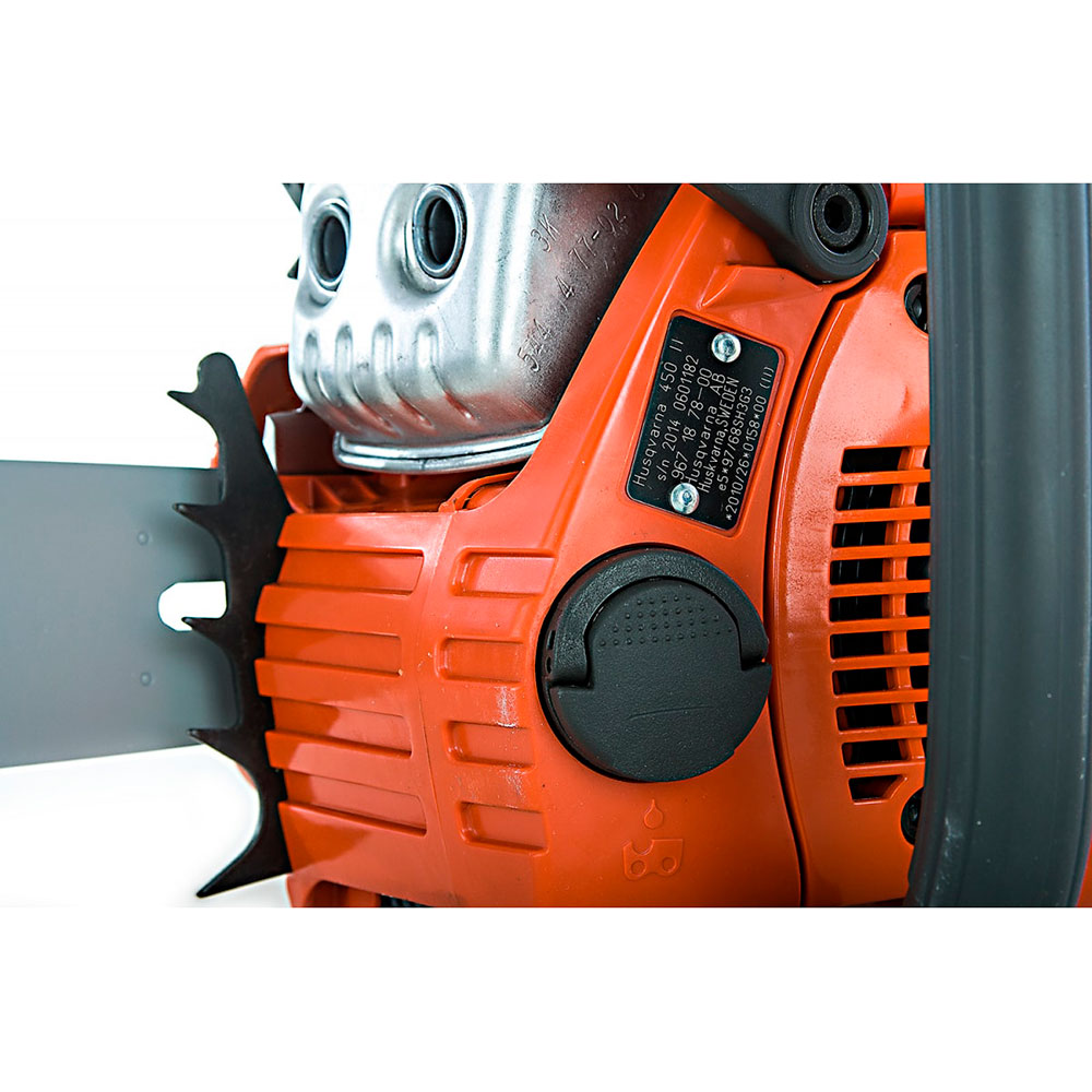 Бензопила Husqvarna 450 II может использоваться как для домашней заготовки дров и обработки древесины, так и валки деревьев. Подкачка топлива обеспечивает быстрый запуск в любую погоду, даже на холодный двигатель. Антивибрационная система снижает воздействие на руки и плечевой пояс.